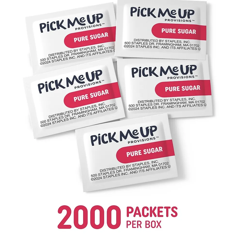 Sweeten the office environment with sugar that your colleagues can take with them. Give everybody the flexibility to enjoy their coffee anywhere they want with this box of 2000 Pick Me Up Provisions sugar packets. Each paper pouch equals one serving ready to be poured into a cup of coffee to give it that extra boost. With so many packets, you can place them in multiple breakrooms, coffee stations, waiting rooms or elsewhere around the office. You can even keep a few in your desk drawer. 100% pure cane sugar will make everyone’s mid-morning or late- afternoon coffee break a little bit better. Give clients, colleagues and other guests a way to make their beverages just the way they like them.