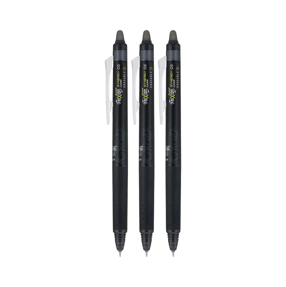 Pilot FriXion Synergy Clicker Retractable Erasable Gel Pen, Extra Fine Point, Black Ink, 3/Pack (FXYC3BLKE)