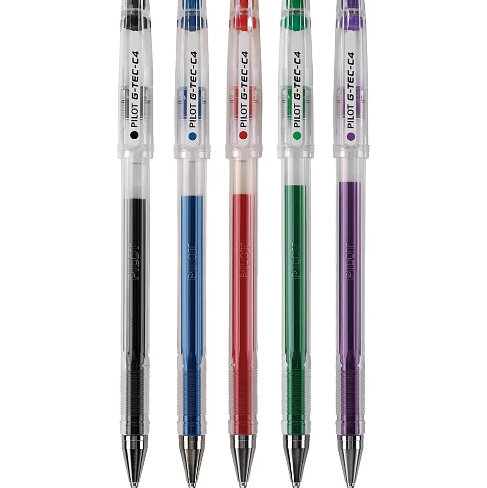 Enjoy smooth, detailed lines when using Pilot G-Tec-C Gel ink pens. These gel pens feature advanced bio-polymer ink which resists feathering and smearing. Available with a textured grip for comfort and control.