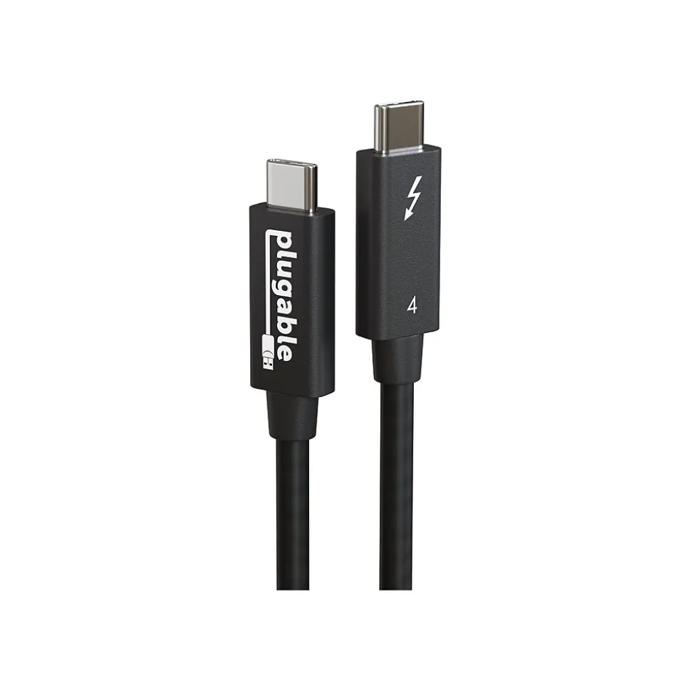 The Plugable Active 1M (3.2ft) Thunderbolt 4 and USB 4 cable is built to deliver a true Thunderbolt experience. Even at a full meter, get 100W Power Delivery, 40Gbps data transfer speeds, and support for two 4K screens or one 8K screen with no loss in performance. And because it’s certified Thunderbolt 4, it can be used as a Thunderbolt 3 cable in your Thunderbolt 3 dock-and that’s true for USB-C and USB4, too. Thunderbolt 4 or USB4, which is it? Both. And a little more. This cable is Thunderbolt 4 certified, and that comes with some incredible benefits. USB-C, USB4, Thunderbolt 3, or Thunderbolt 4, it doesn’t matter, The Plugable Active 1M USB4 and Thunderbolt 4 cable will work. Even at a full meter, you won’t see a decrease in performance. Often overlooked, the cables connecting our computers to their peripherals have an important part to play. That’s why our and TBT4-40G1M cables are Thunderbolt certified-it’s the only way to ensure you’re getting complete compatibility and reliability. That means data transfer speeds up to 40Gbps, 100W 20V/5A Power Delivery, and backward compatibility with previous generations of Thunderbolt and USB. You have a powerful laptop. You have a high-definition monitor. Don’t sacrifice your resolution to cheap Thunderbolt cables. Plugable’s 1M Active Thunderbolt 4 and USB 4 cables deliver 33 million picture-perfect pixels, either split between two 4K monitors @60Hz, or all on one 8K screen @30Hz.
