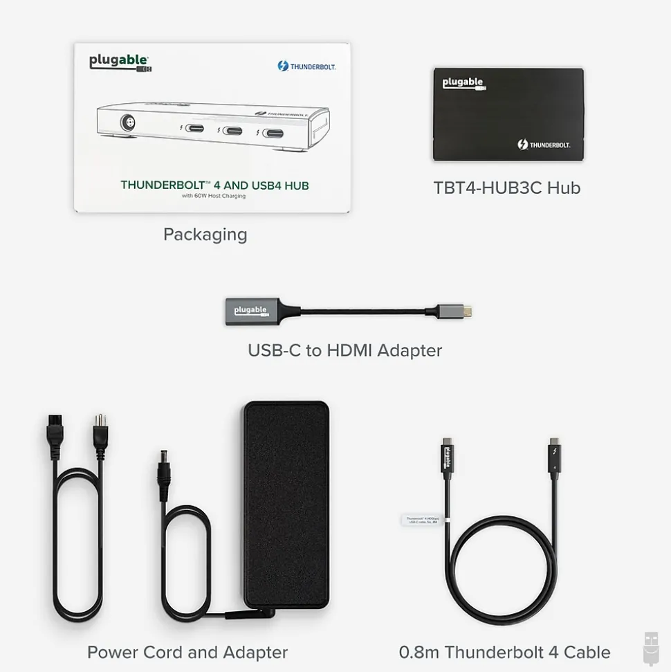 Plugable 4-Port USB-C Hub, Black (TBT4-HUB3C)