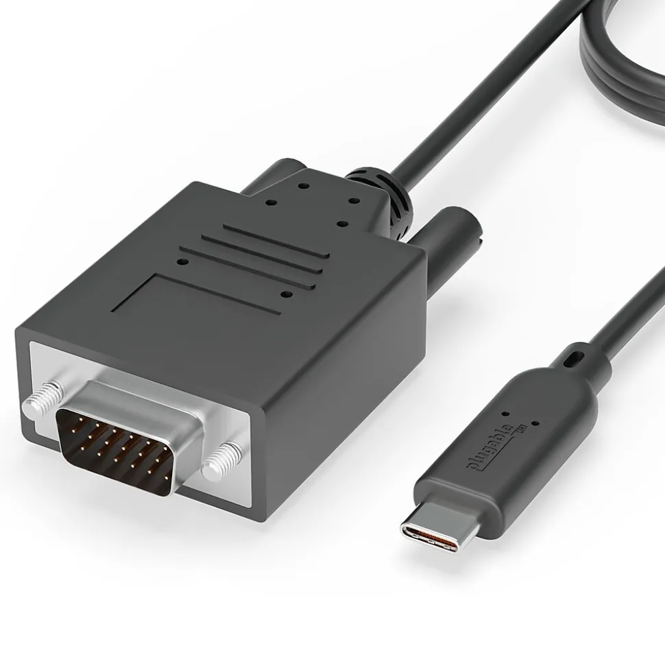 The Plugable USBC-VGA-CABLE 6′ video cable in black, is to connect an older VGA equipped monitor. It is compatible with iMac Pro, MacBook 2017, Pro, Pro 13″, Pro 15″, Retina 12″ 2015, Retina 12″ 2016, Dell XPS 13, XPS 15, Chromebook Pixel 2015, ThinkPad P50 and ThinkPad P70. It has 15-pin HD-15 male VGA connector on the first end and USB 3.1 type C male connector on the second end.