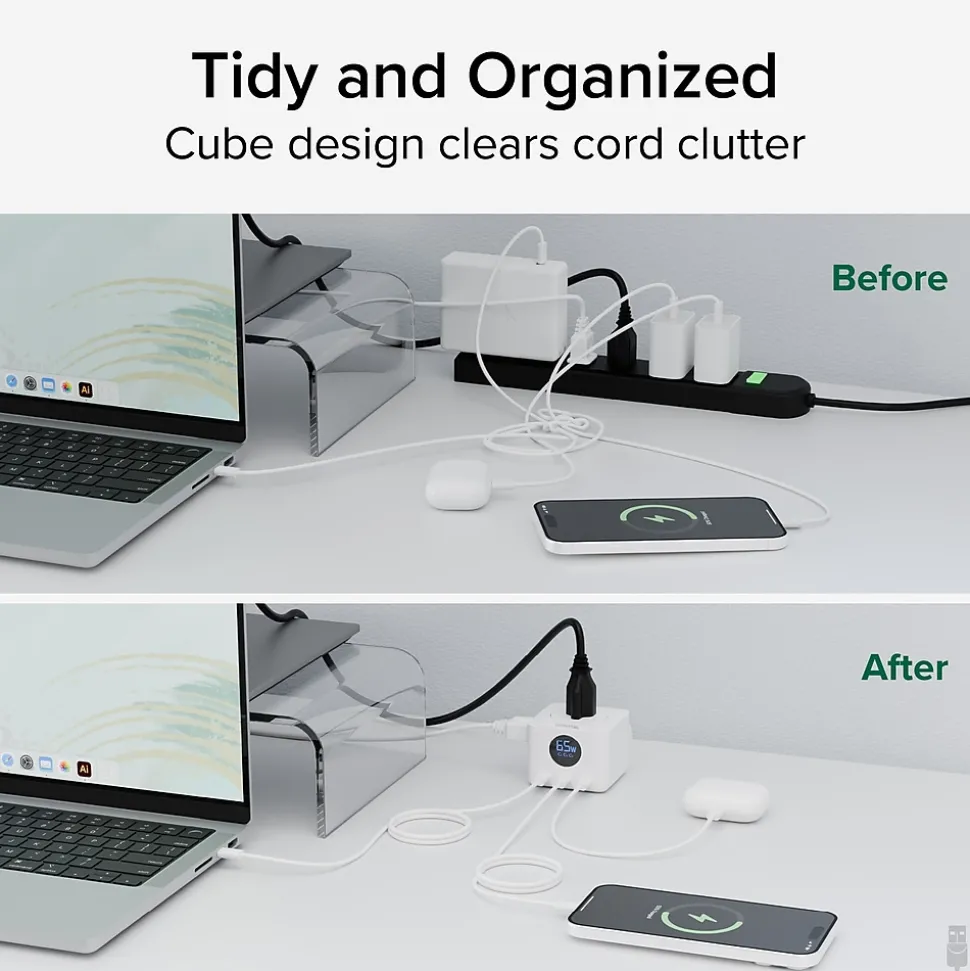 - Power Extended – A sturdy 1.55m (about 5 ft) outlet splitter puts power where you need it with 3x power outlets. Power bigger devices, or add charging blocks (not included) to charge more USB devices. This charging cube is 3rd party test for short circuit, overvoltage, and overcurrent protection
