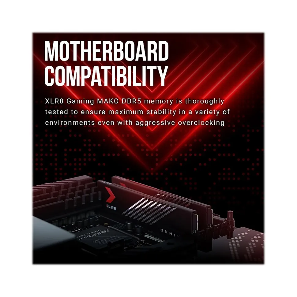 PNY’s XLR8 Gaming MAKO desktop memory kit in 6000MHz offers impressive stability with AMD systems and is also compatible with Intel via preprogrammed XMP profiles. Overclocking memory is a great option for getting additional performance out of a system. Previously, DOCP was used to overclock memory using the same protocol as XMP to automatically set the data rate and timing on AMD motherboards. The latest AMD processors now offer EXPO, which is an advanced way to overclock that touts higher performance and improved stability. For more than 35 years, PNY has been rigorously sourcing, testing, and manufacturing memory upgrades for thousands of the most popular PC platforms. Get your custom PC dressed and ready for battle with the XLR8 Gaming MAKO DDR5 6000MHz CL40 upgrade from PNY, and watch the world blaze.