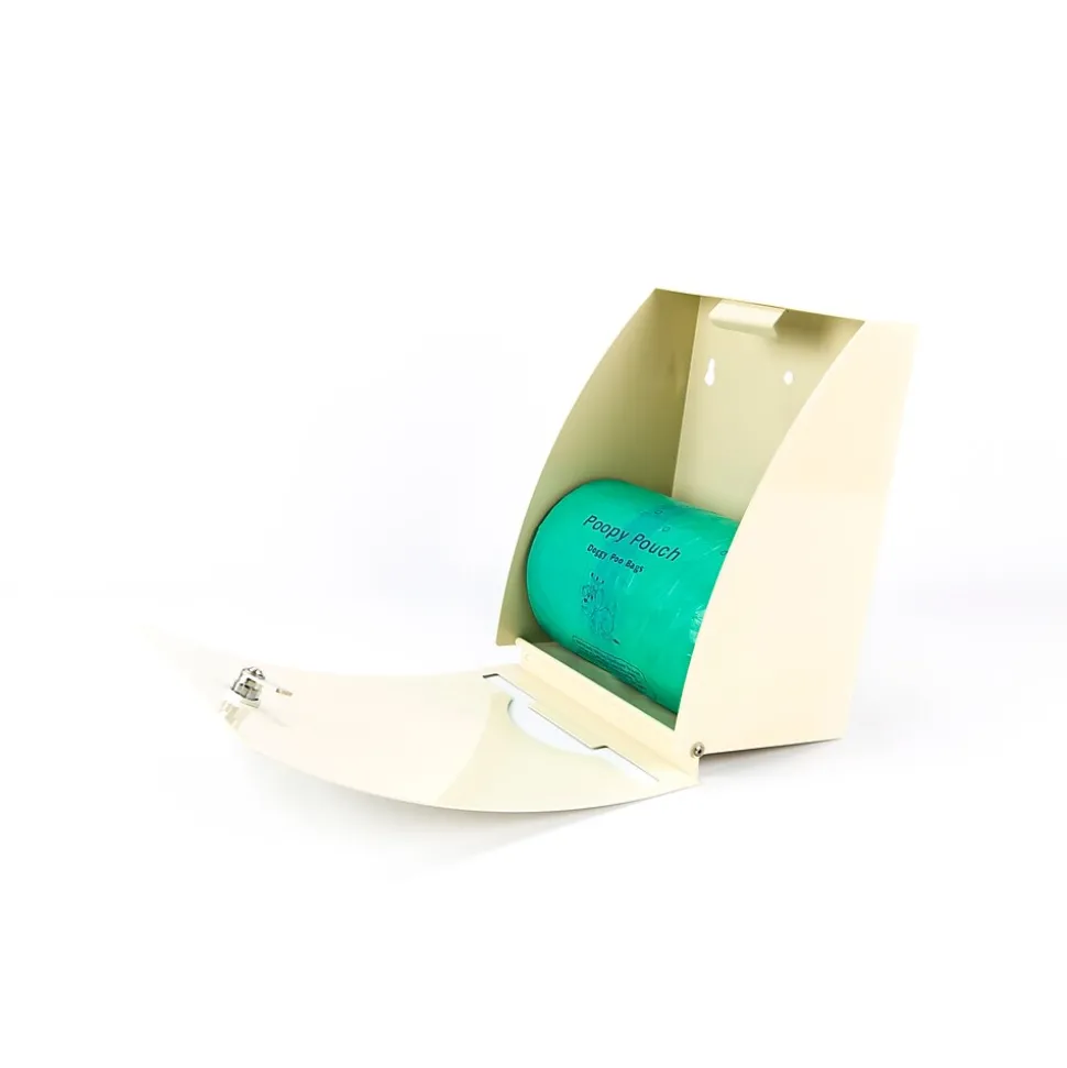 This convenient pet waste bag dispenser encourages resident cleanup. The streamlined bag dispenser design is ideal for use in indoor/outdoor hallways, corridors, and common areas or wherever residents come and go with their dogs. Constructed of durable, rustproof, powder- coated steel, the locking mechanism helps prevent vandalism, and the wide slot opening allows for easy bag dispensing. Available in beige and metallic, this dispenser holds up to 400 roll bags and is designed for use with replacement bags #SD-6-400.