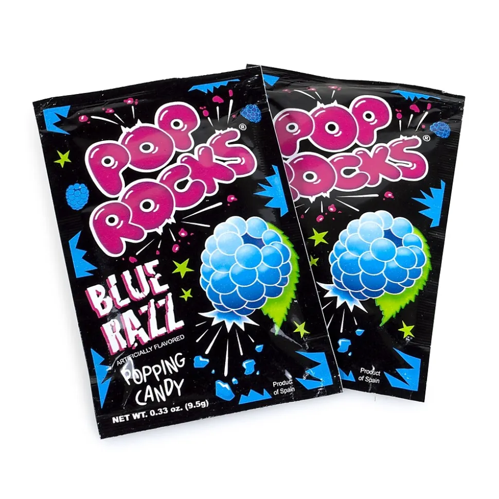 Pop Rocks Candies come in blue raspberry flavor and offer relishing taste. Candies are great addition for parties, weddings, birthdays, giveaways, individual enjoyment and more.