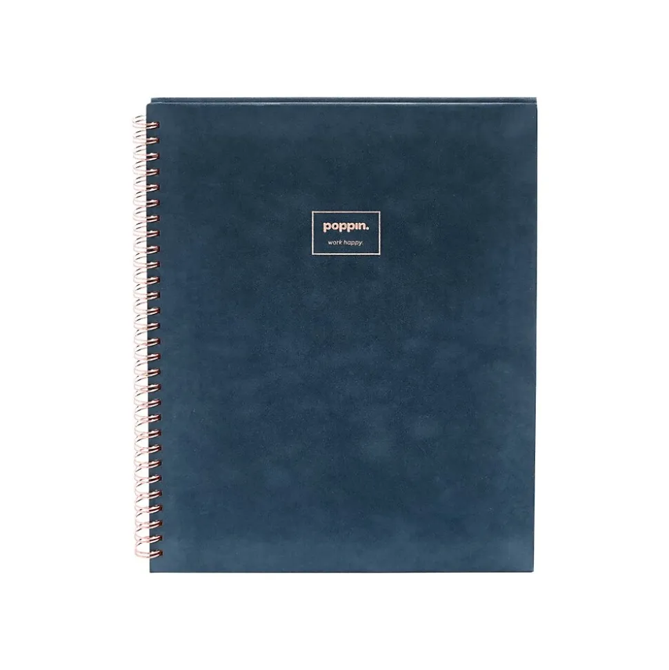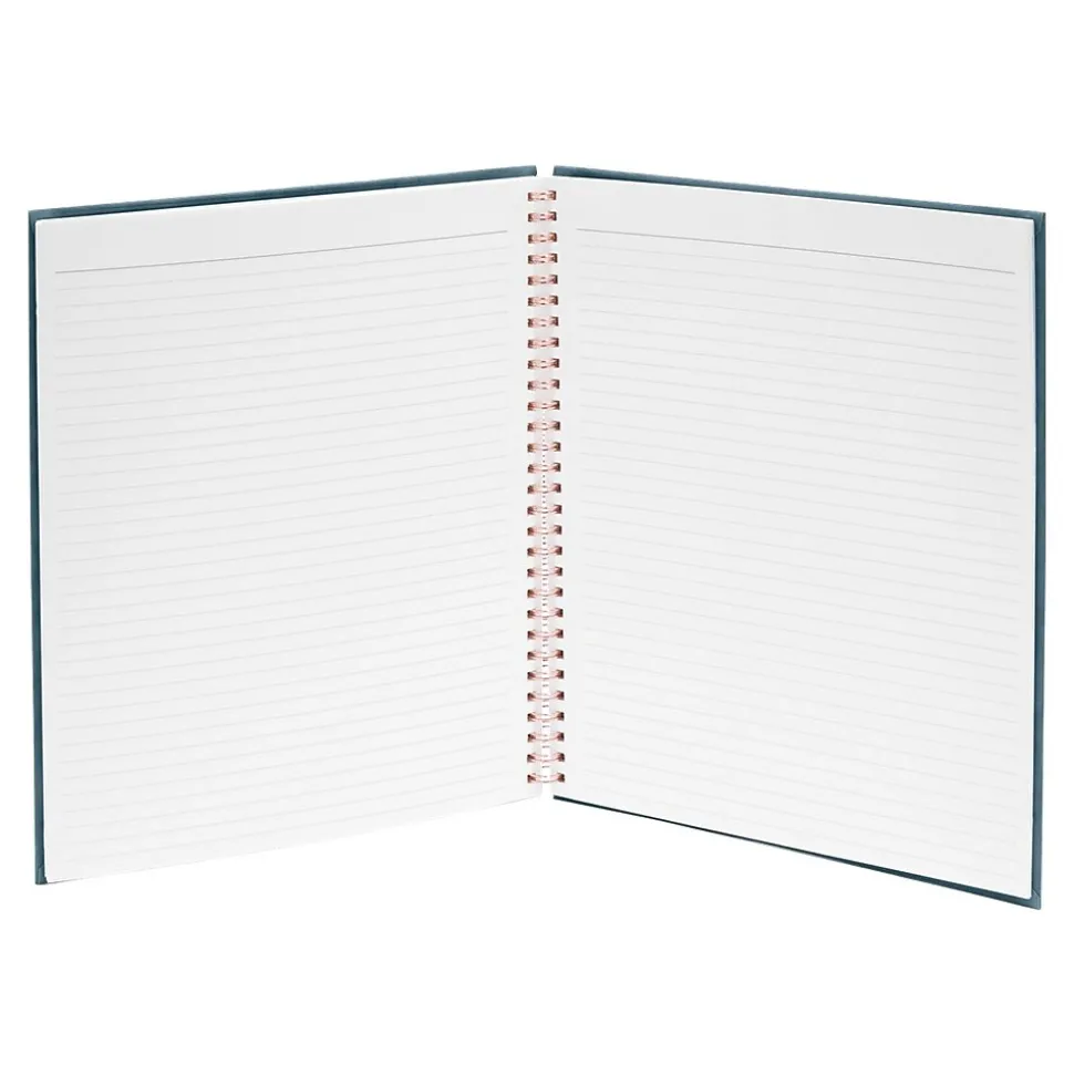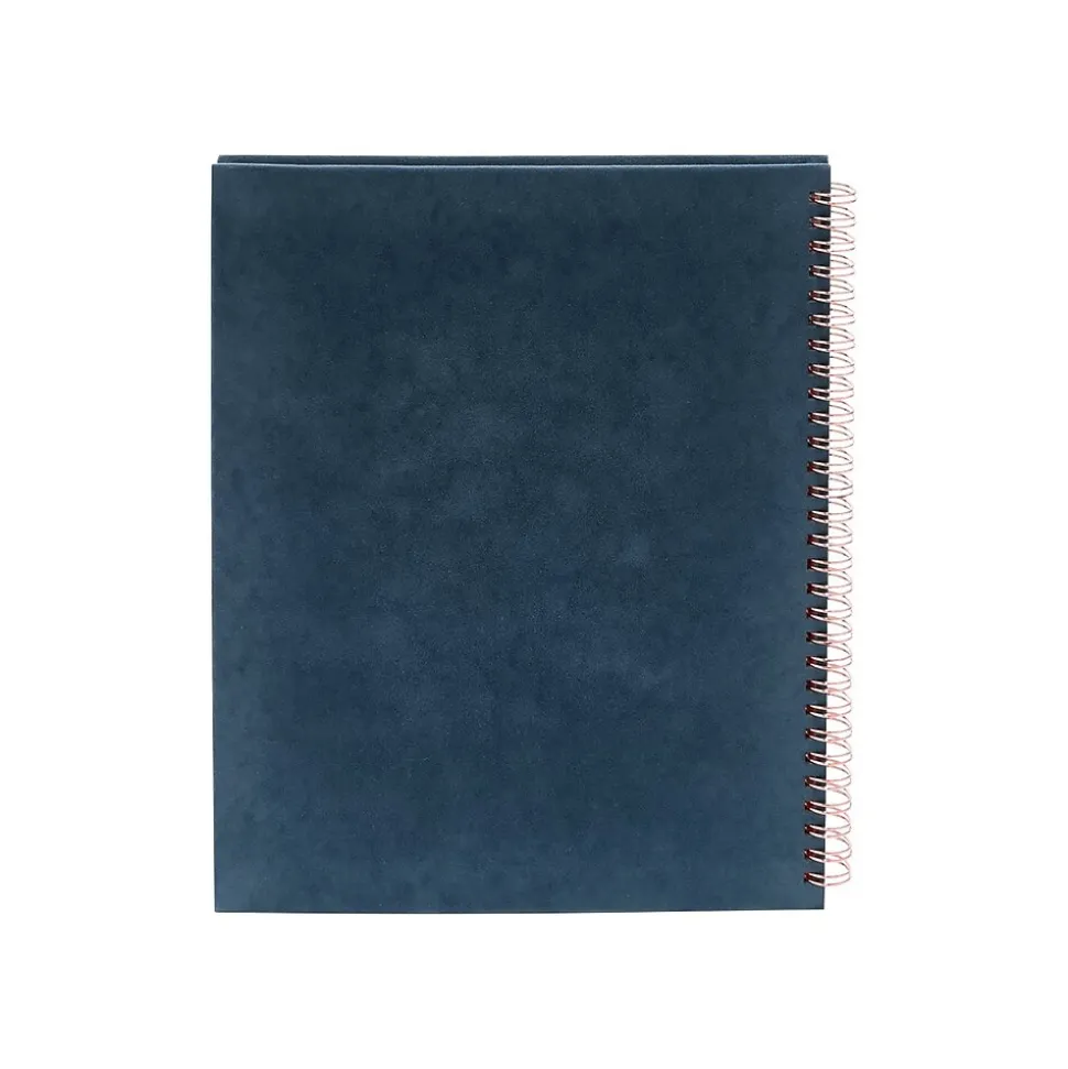 Write down important class details, reminders, and other information in this large notebook. The copper spiral binding adds a stylish flair and allows for easy page turning, while the perforated edges make it simple to remove used sheets. This Poppin Velvet spiral notebook is large, offering plenty of room for writing and has a hard cover, providing increased durability and protection to contents.