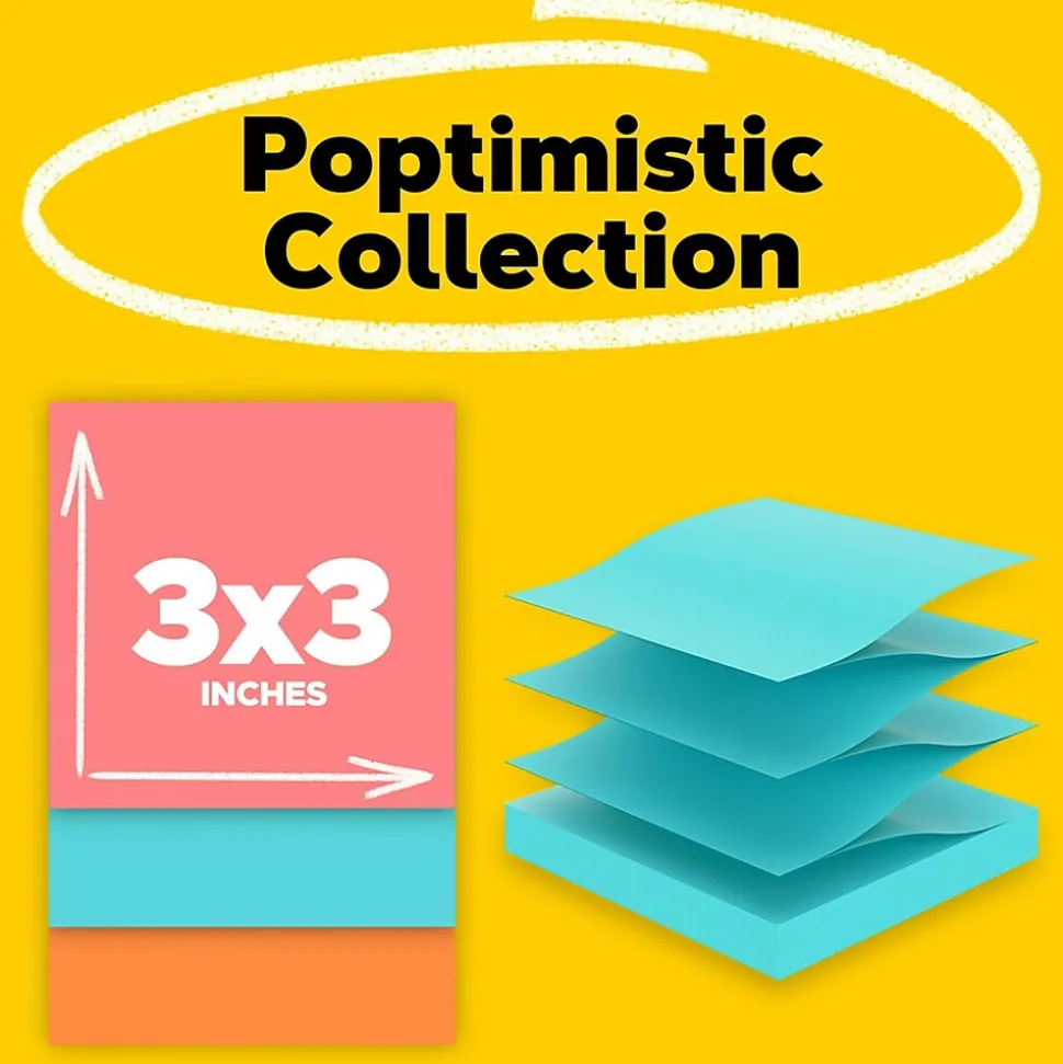 Post-it Dispenser Notes, 3 in. x 3 in., are accordion-style notes specially designed to work in Post-it Note Dispensers. With these notes, you’ll always have a note nearby to capture great ideas. Unique adhesive is designed to work on paper or in planners. Use for notes or reminders to yourself or others. Cabinet pack is great to stock up your office, school or work area. The Poptimistic collection gives your messages pop and optimism with bright colors that grab attention. Post-it Dispenser Notes are recyclable and the paper in Post-it Notes is sourced from certified, renewable and responsibly managed forests. 12 Pads/Pack, 100 Sheets/Pad.