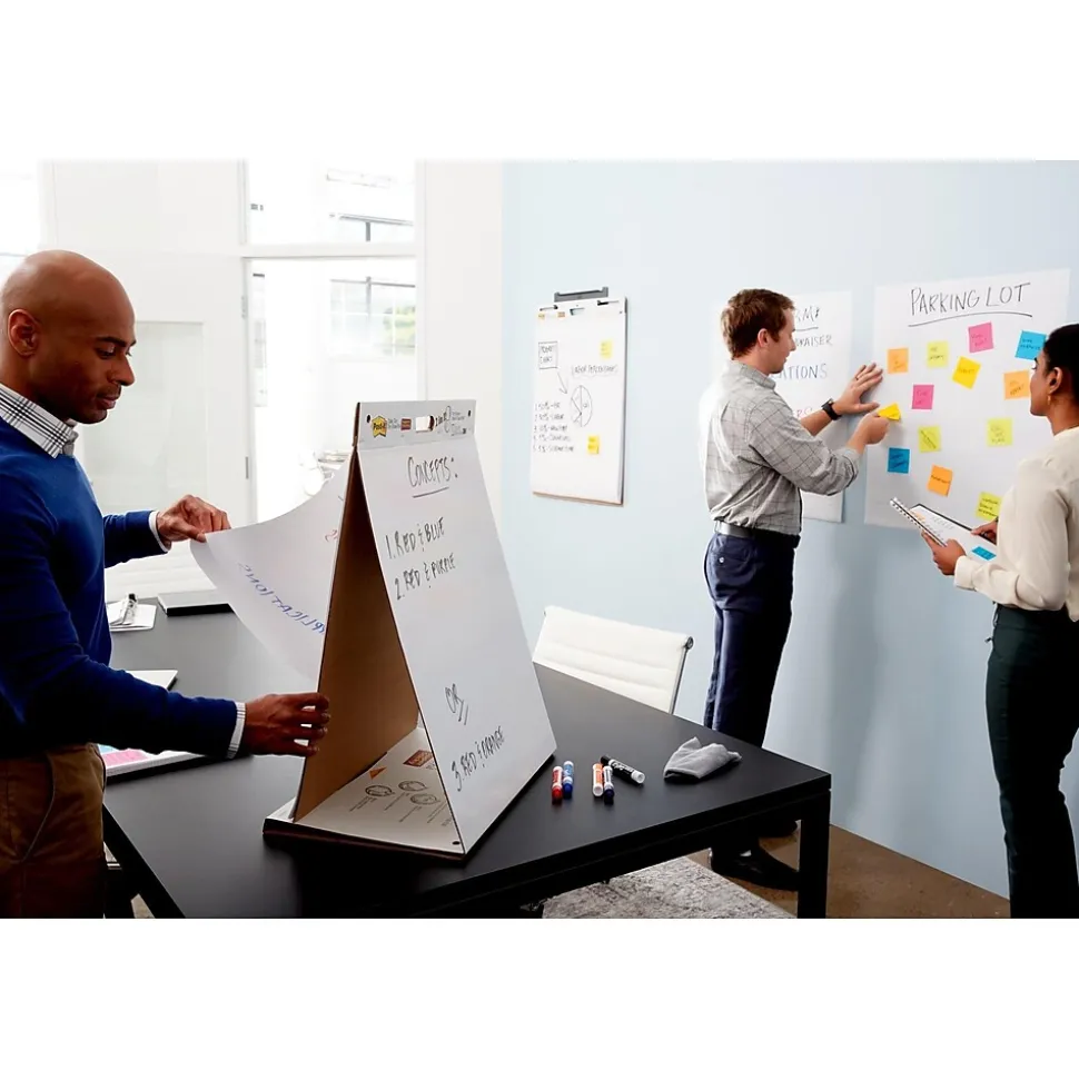 It’s an amazing feeling when your team just clicks-everyone feels a shared drive toward success. But, how do you ignite that feeling on every team? Capture the spark at your next meeting with Post-it Super Sticky Easel Pads. Adhesive backed sheets stick and re-stick to hold up to 2X longer to most wall surfaces, unlike flip chart paper. The paper resists marker bleed through so you can capture input by writing directly on the sheet. Use with Post-it Super Sticky Notes to organize ideas. Download the free Post-it App to instantly capture and save your work so you can share notes with the team without recaps or delays.