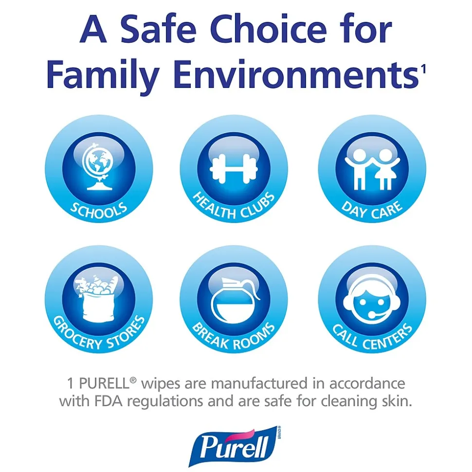 Help keep those you care for anywhere, anytime with PURELLĀ® Cottony Soft Hand Sanitizing Wipes.Clean and sanitize hands in the office, when eating out, and on-the-go. PURELLĀ® hand sanitizing wipes are proven to kill 99.99% of most common germs that may cause illness without damaging skin. These premium quality hand wipes are thick and textured, making it easier to clean, sanitize and moisturize. They are also dermatologist tested and formulated to be gentle on skin with moisturizers, aloe and vitamin E.Plus, they fit just about anywhere.Put in your pocket, bag, lunch or car.