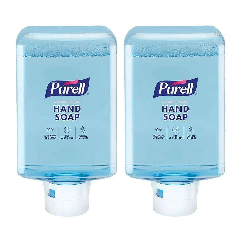 - Includes: 2 – PURELL® Antimicrobial Foaming Hand Soap, Fragrance-Free, 1200 mL Refills for the ES10 Automatic Hand Soap Dispenser. ES10 dispensers (8334-E1, 8330-E1, 8338-E1) are sold separately.