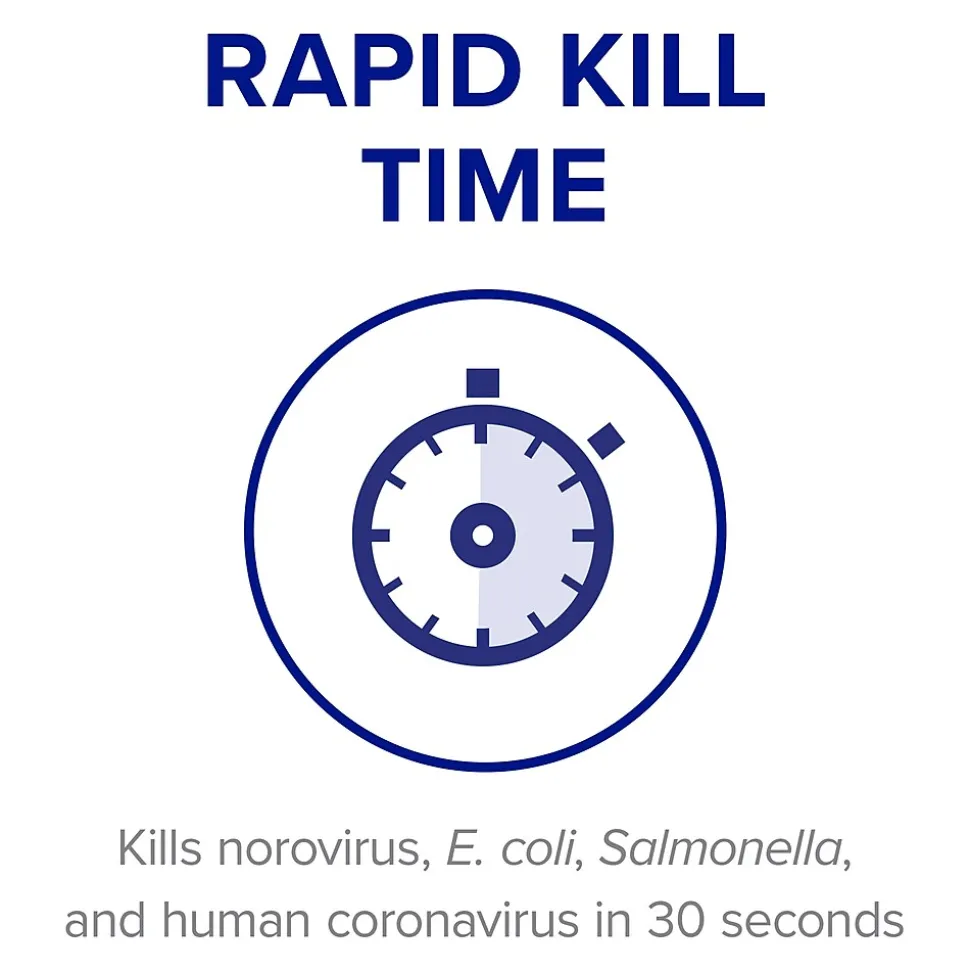 - Formulated for convenience and ease-of-use, you get powerful germ-kill on the surfaces people touch most with a solution that’s mild enough to use around guests.
