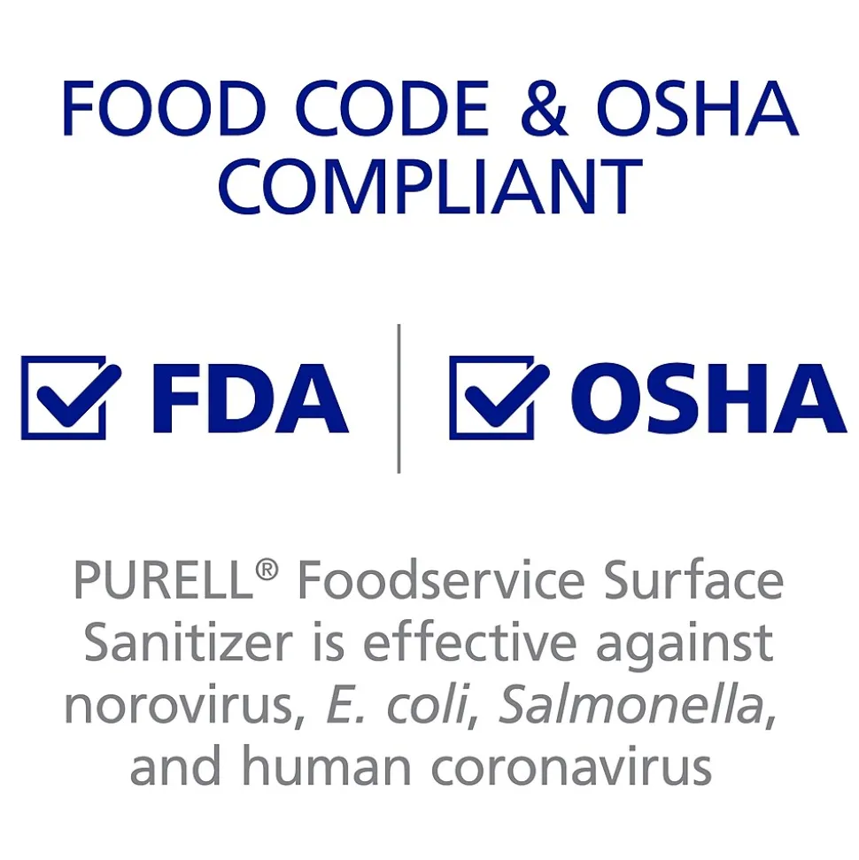 - Case includes: 6 PURELL® Foodservice Surface Sanitizer, 32 fl oz Capped Bottles with 2 Spray Triggers in Pack.To order more triggers, consider purchasing SKU 819269, Impact 9.5” Spray Trigger.