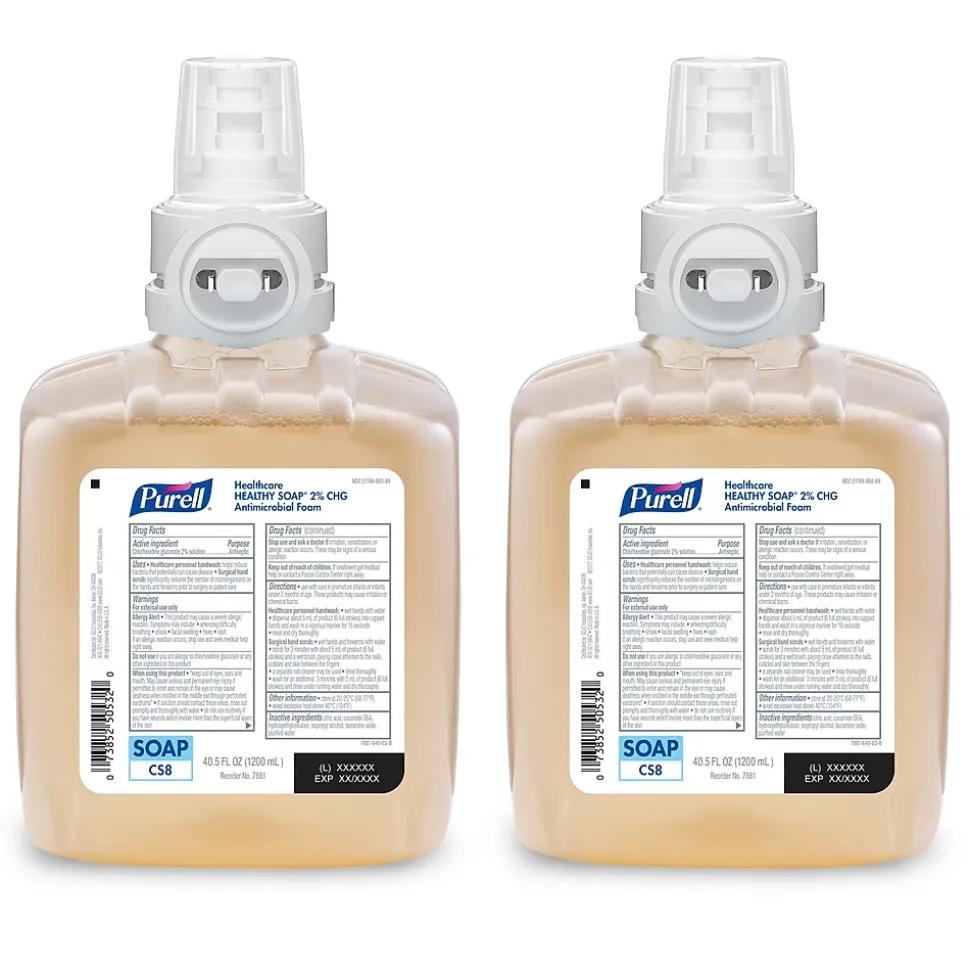 - Case Includes: 2 – PURELL® Foam Handwash 2% CHG Antimicrobial Foam refills, Fragrance Free, 1200 mL Refills for the CS8 Automatic Soap Dispenser; CS8 dispensers (7834-01 and 7830-01) are sold separately.