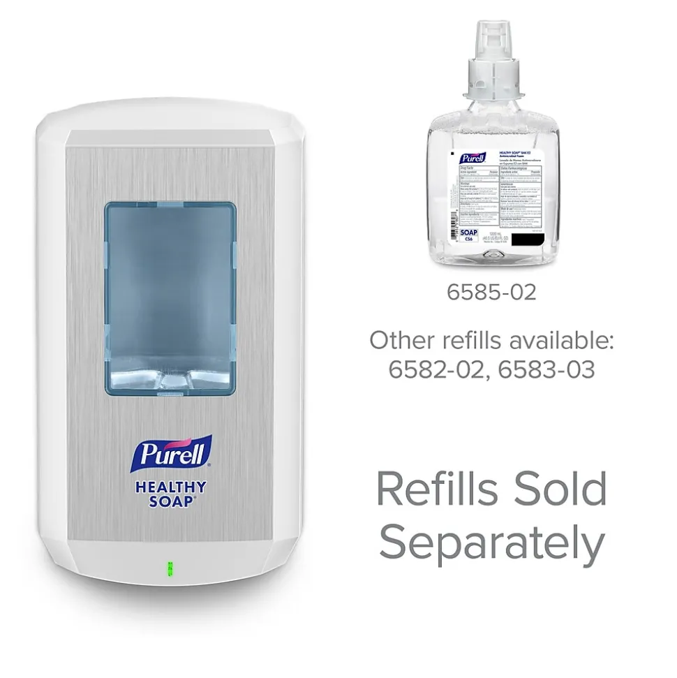- Works with PURELL CS6 1200 mL HEALTHY SOAP refills (sold separately, SKU 6585-02, 6583-03, 6582-02); large refills are ideal for high-traffic areas