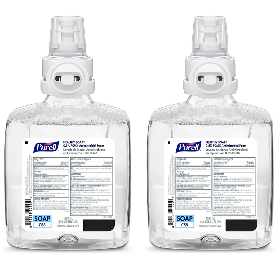 - Case includes: 2 – PURELL HEALTHY SOAP™ 0.5% PCMX Foam 1200 mL refills for CS8 automatic soap dispenser. CS8 dispensers (7830-01 and 7834-01) are sold separately.