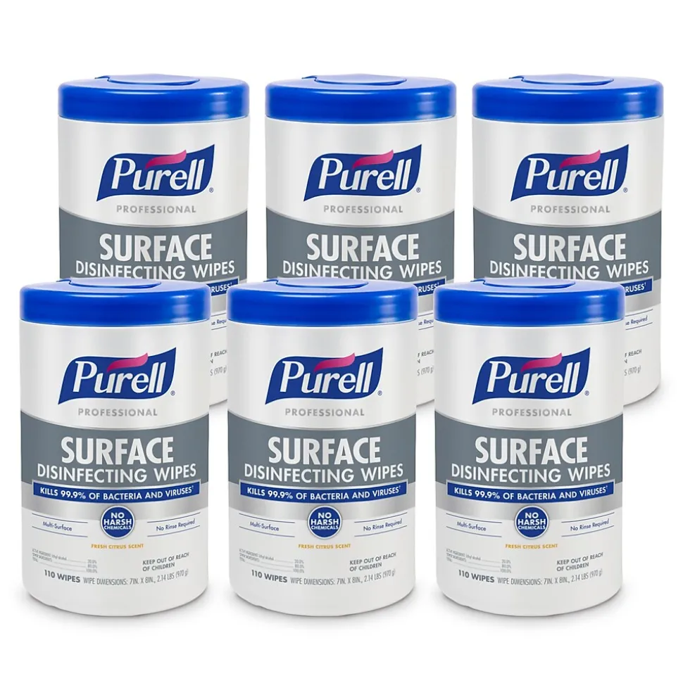 - Case includes: 6 – PURELL Professional Disinfecting Wipes, 110 Count Canister