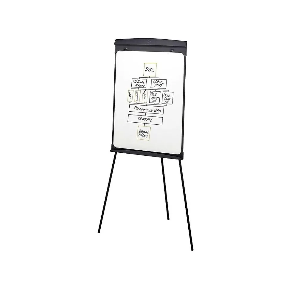 Use prepared diagrams and write impromptu notes on this 70-inch presentation easel, which features a magnetic, 27 x 35-inch whiteboard surface. This whiteboard easel includes one clamp and two arms that fold out to support flip charts on either side of the main display. The sturdy tripod legs telescope down, making this Quartet presentation easel easy to store and move between meetings or training sessions.