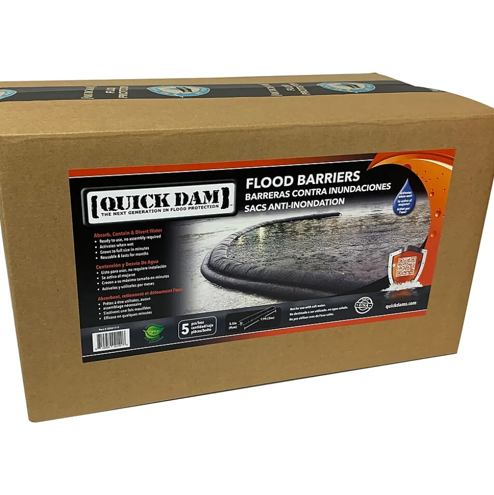 The Quick Dam flood barrier absorbs, contains, and diverts problem flood water. The barrier is water-activated and comes in a 17′ length. The flood barrier absorbs, swells, and gels oncoming water on contact to create a durable barrier. Compact, lightweight, and easy to use. Perfect to keep stored away until needed. Keep your home and property protected from the dangers of flooding.