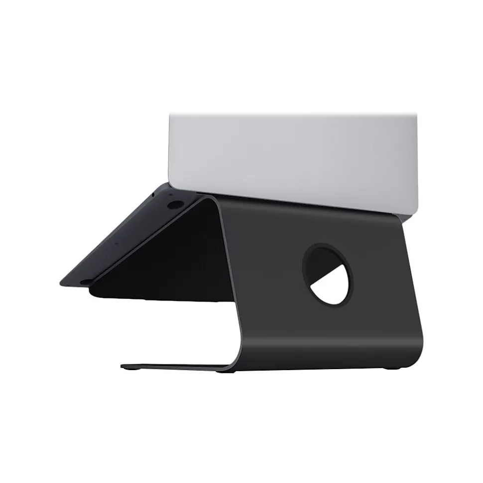 Designed to uplift. Made of a single sturdy piece of aluminum, mStand transforms your laptop into a stylish workstation with its elegant curves and silver-anodized finish. The single piece design solidly holds a laptop while the aluminum panel acts a heat sink to keep the laptop cool. A cable hole in the back of the stand routes wires to reduce clutter. Long-term use of a laptop as the main computing device can strain the body as the user hunches down to see the screen and type, the mStand raises the screen 5.9″ to meet the user’s eye level, thus promoting better posture, while its tilt design brings the screen closer for easier viewing. With an external keyboard and mouse, mStand creates an ideal ergonomic desktop setup for laptop users. Compatible with all sizes of Apple and PC laptops.