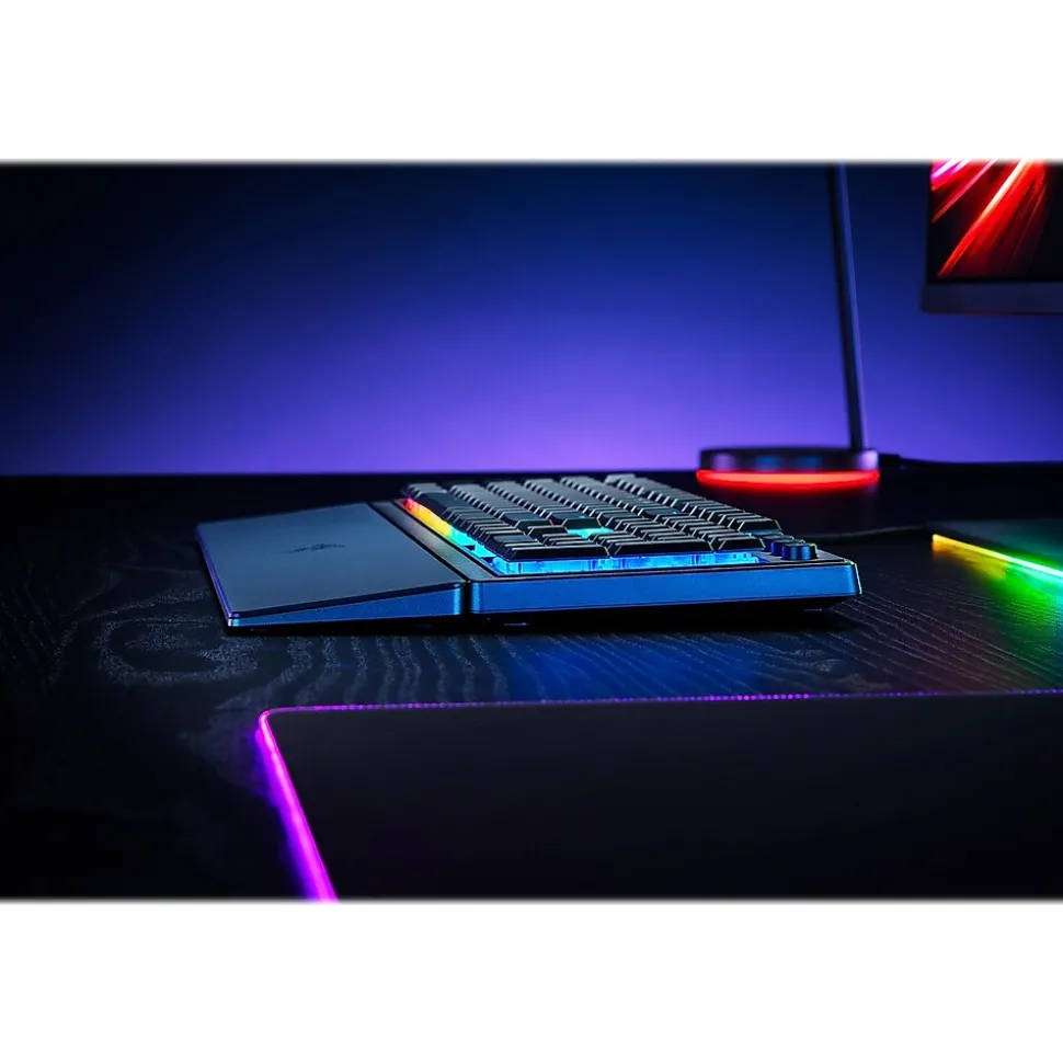 Meet the Razer Ornata V3, a low-profile ergonomic gaming keyboard powered by Razer Chroma RGB. Sporting a new ultraslim form factor, more durable key caps, and unique mecha-membrane switches, enhance your work and play with a hybrid keyboard that combines the best of both worlds. With slimmer key caps and shorter switches, enjoy natural hand positioning with a low-profile ergonomic gaming keyboard that allows for long hours of use with little strain. Fusing the snappy, clicky feedback of a mechanical switch with the familiar feel of a conventional keyboard, each keystroke you make is as satisfying as it is precise. More durable than regular key caps, the UV coating ensures more fade-resistant legends and greater protection against wear and tear from frequent use. Configure them to pause, play, skip and adjust everything from brightness to volume, the ultimate convenience as you enjoy your entertainment. Designed to seamlessly snap to the low-profile keyboard, the soft-touch wrist rest provides ample comfort and support for your wrists, especially vital for long periods of use.
