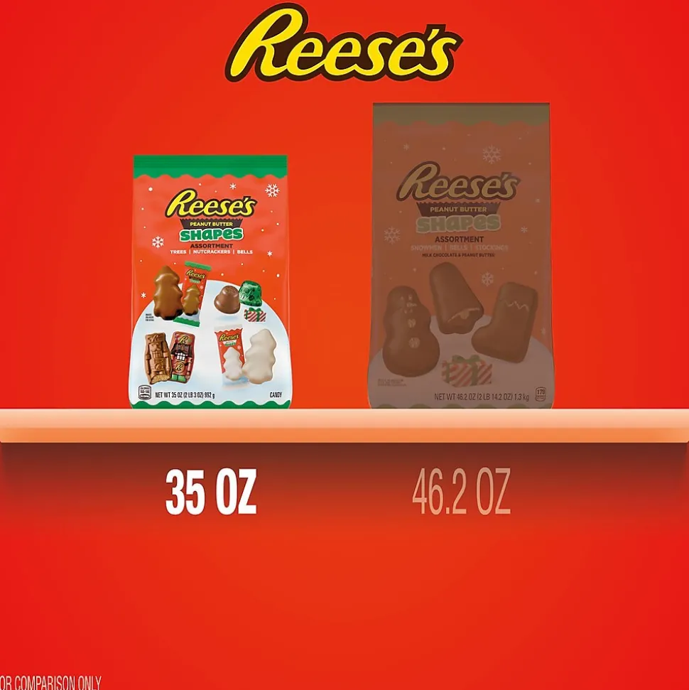 - Contains one (1) 35-ounce bag of REESE’S Assorted Peanut Butter Shapes Candy