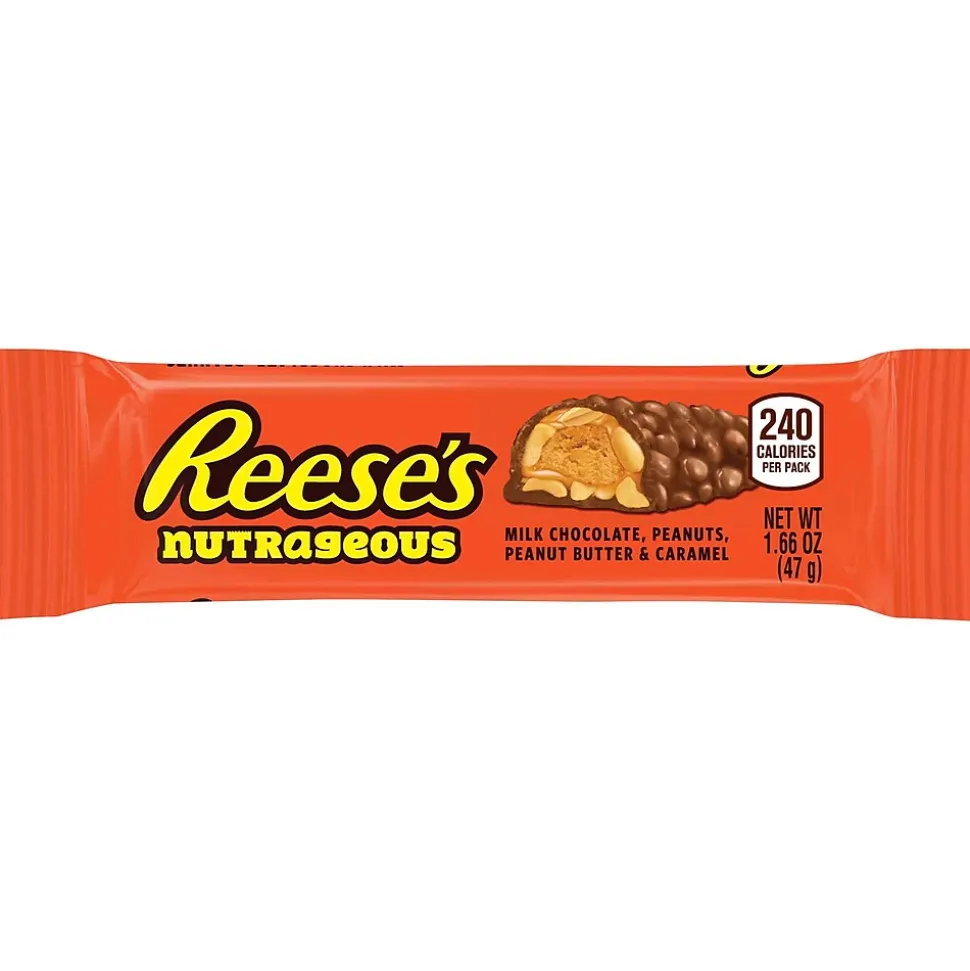 Even at the office your taste buds rock out to a Reese’s NutRageous Candy Bar, where Reese’s Peanut Butter takes center stage. There’s nothing ordinary about this outrageously delicious jam session of peanut butter, roasted peanuts rolled in rich caramel, and Hershey’s Milk Chocolate!