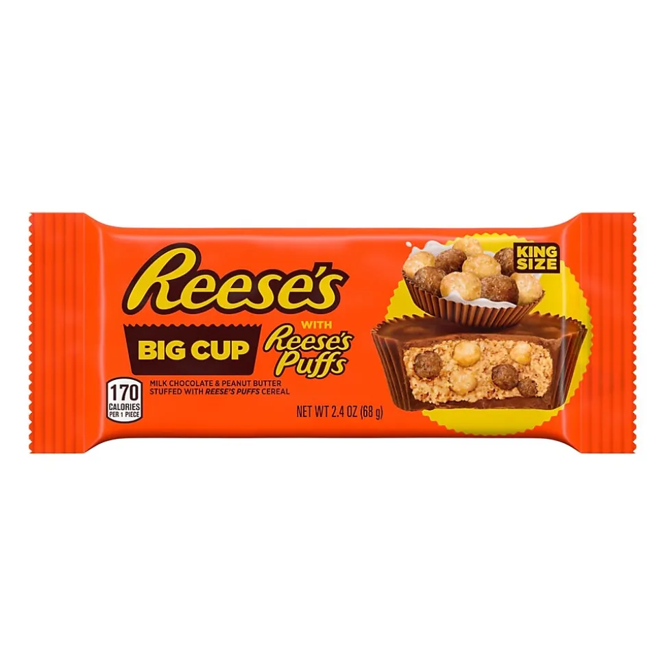 - Experience a crunchy, delicious duo of REESE’S milk chocolate peanut butter cups stuffed with REESE’S Puffs Cereal during movie nights, snack breaks, adventures and picnics