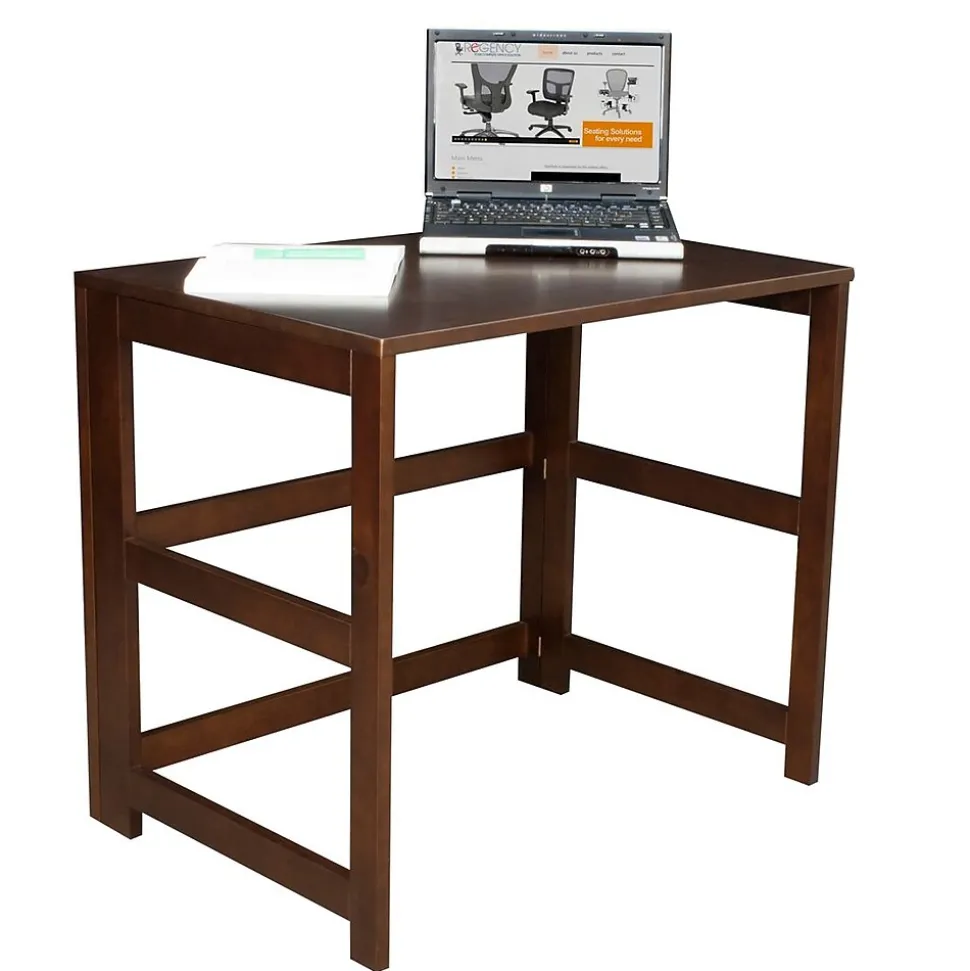 The dorm-room ready Flip Flop collection saves time and money. This Desk unfolds into place right out of the box and assembles in less than 5 minutes. It is constructed of a solid hardwood frame and is finished in a deep Mocha Walnut hand-rubbed veneer. Ships nearly assembled- just attach the top and assembly is finished! Extend the work surface by placing next to a Flip Flop Deskside Bookcase or use on its own for a compact laptop or study desk. Perfect for homes and offices alike, this great desk folds up for easy transportation and storage when not in use.