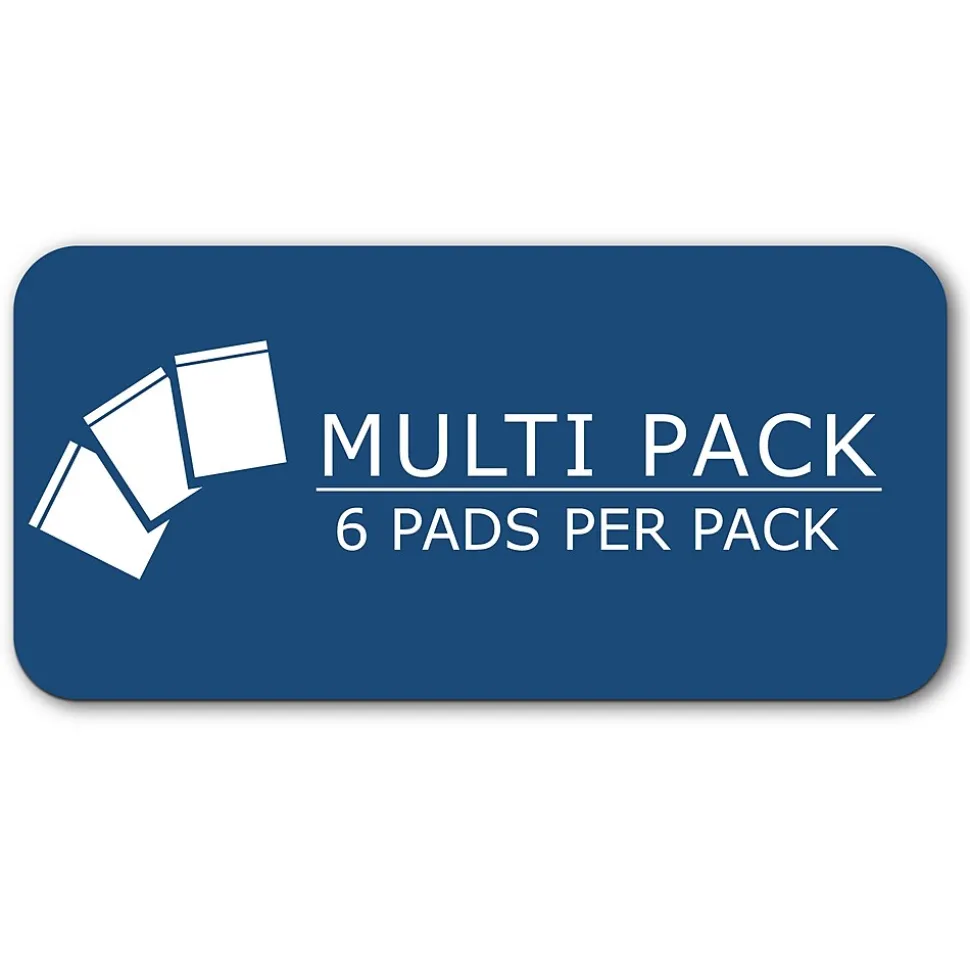These Roaring Spring Paper Products junior size assorted color legal pads feature smooth, 16. lb writing paper that has legal ruled blue lines and double red margin lines. Sheets are micro-perforated for EZ removal. Paper is recycled, containing a minumum of 30% post-consumer content. Chipboard back covers add stability. Each pack contains 6 pads, 1 each of orchid, blue, green, ivory, grey and pink. Stapled and taped construction. Sheet size is 5″ x 8″ and there are 50 sheets in each pad. Proudly made in USA!