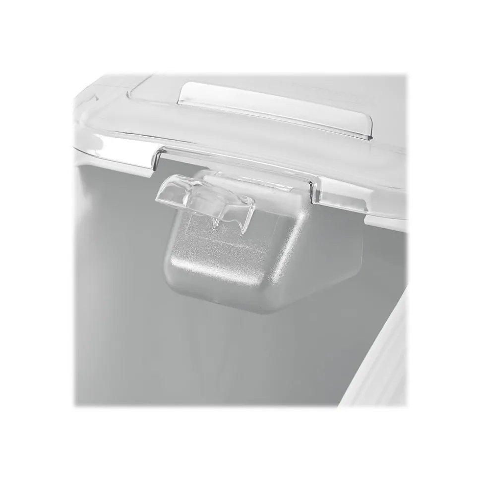 Access flour, sugar and grain quickly with this Rubbermaid ingredient bin. The clear sliding lid on this bin lets employees swiftly identify and fetch recipe elements with one hand, saving time and movement in busy kitchens. The storage bin’s rectangular shape and four casters make it easy to move under prep tables or into storage rooms. This 26.2 gallon Rubbermaid ingredient bin has a built-in scoop storage facility to meet food code regulations.