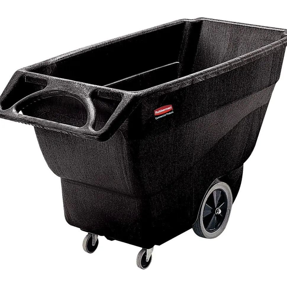 Rubbermaid commercial black structural foam tilt trucks are easy to clean and a cinch to handle as they help maintain your facility’s sanitary conditions. Two swivel casters combine with a steering wheel handle for excellent maneuverability around tight corners and in compact spaces. Molded structural foam and plastic represent two heavy-duty materials that are virtually maintenance-free and don’t take much to clean. Just hose down each tilt truck with water and get ready for the next load.
