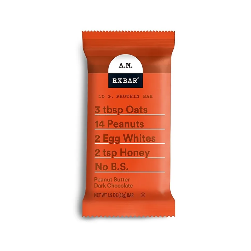 It’s decadent. It’s the combo people dream of. The RX Bar A.M. features peanut butter and rich dark chocolate in a morning protein bar that packs in 10 grams of protein, what’s not to love? It’s not just satisfying, it’s delicious. Take this protein bar when you’re off to the gym, or pair it with a cup of coffee. It’s easy to improve your morning routine with the RX Bar A.M. Peanut Butter Dark Chocolate protein bar.