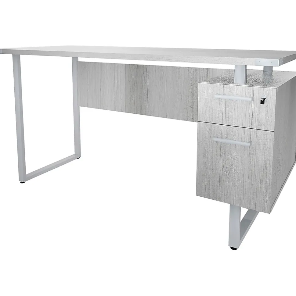 The Safco Mirella SOHO desk with built-in pedestal is perfect for any small office or start-up. The pedestal can be assembled on the left or right side of the desk, and the laminate top and steel legs will provide long-standing durability. Add a Safco task chair, desktop privacy panels, or other accessories to complete your space. Store personal items or supplies in the built-in pedestal to stay organized.