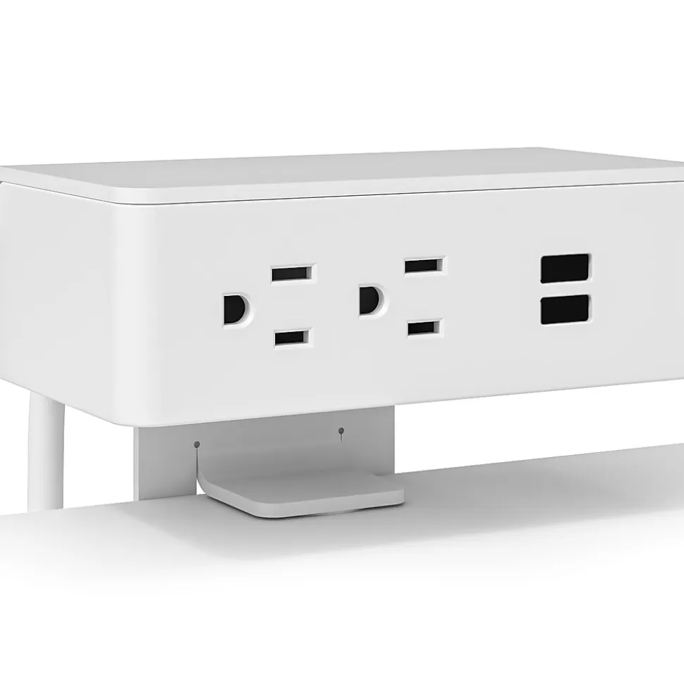 Make power easy to access with the Safco Resi universal power source. Use the adjustable clamp to attach this hardworking power port to just about any work surface. Simply attach, plug into the wall outlet, and get to work. Two AC outlets and two USB ports mean you can power your devices quickly and get to work faster. And longevity is a guarantee with a seamless white steel design.