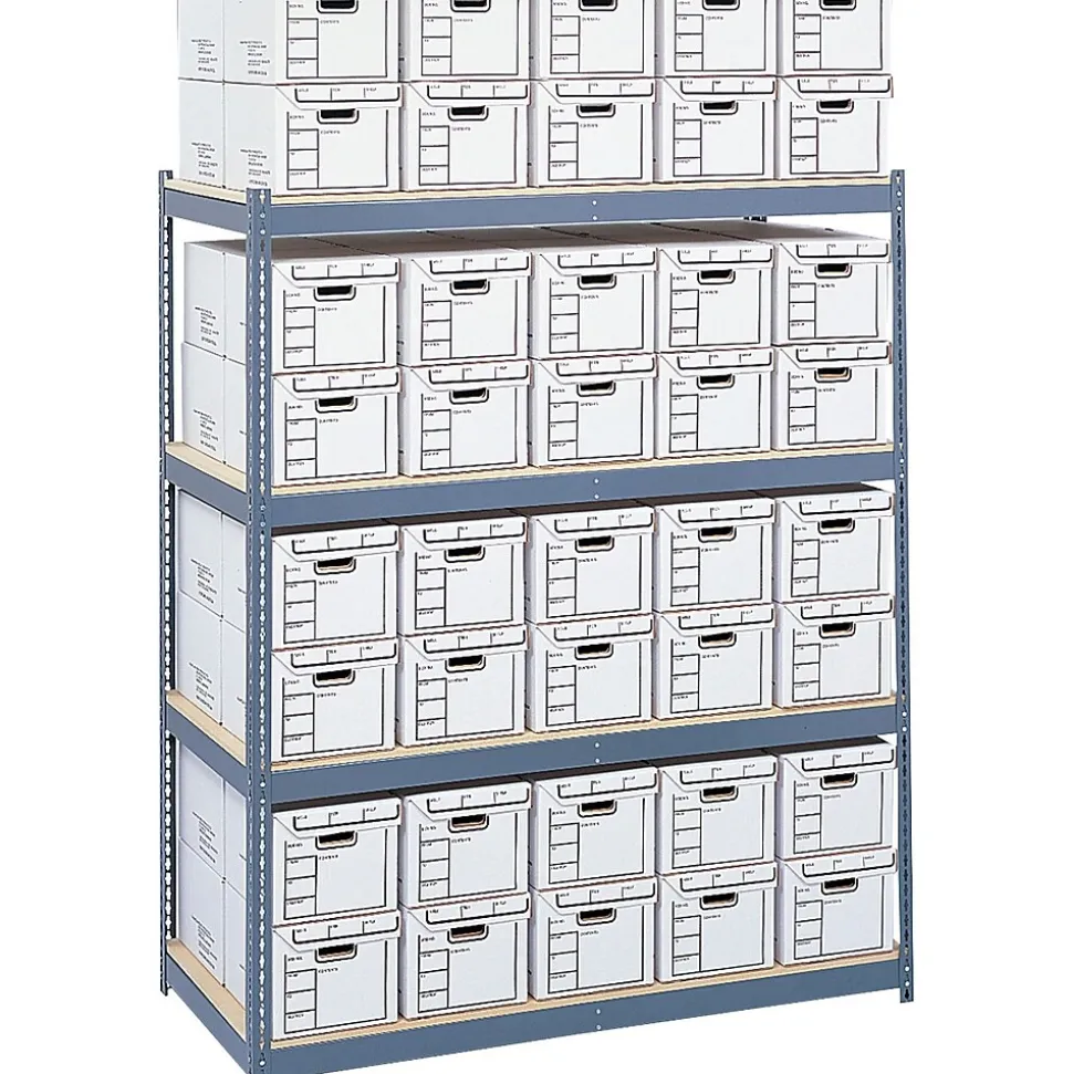 Safco Shelves for Archival Shelving is a steel pack and particle board shelving addition sold to pair with Safco’s storage shelf (5260). Designed to hold up to 80 letter/legal size storage boxes. Shelf holds up to a capacity of 900 lbs individually.