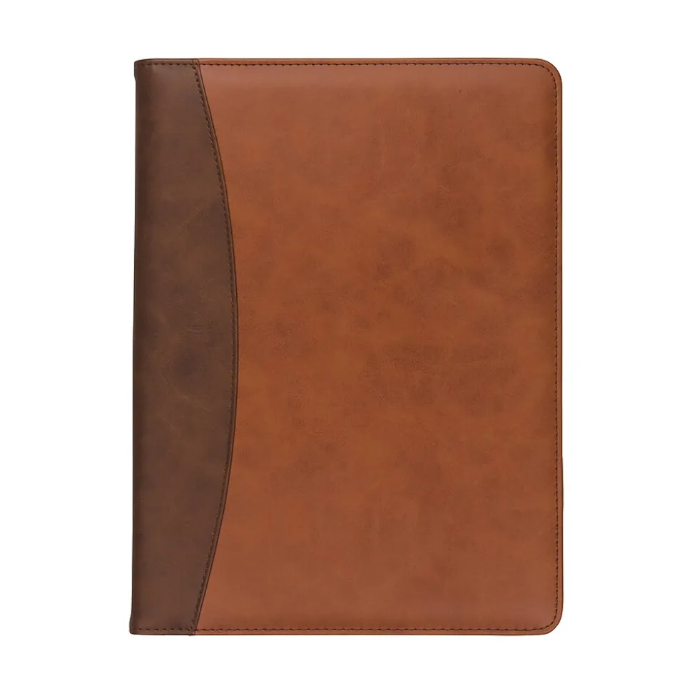 Be the envy of your peers or colleagues with the beautifully crafted two-tone faux leather padfolio. Two complimenting two-tone construction provides an overdue escape from the plain black padfolios that are far too common. Not only if this folio easy on the eyes, but it also has a great feel. Made of soft leather-like PU with a slightly padded cover that offers the feel of real leather with the durability of PU. The elegantly stitched edging and leather trim add extra appeal to the overall look. Well-suited for on-the-go professional women and men, this travel friendly, slim-lined, and minimalist designed organizer padfolio features a clean interior with just the right pockets on the inside front cover. It includes a large document pocket for keeping loose documents, resumes, or magazines with addition pockets for smaller notes, travel documents, and business cards. On the inside back cover, you get a removable and refillable 8.5″ x 11″ writing pad and a pen loop to make it easy to take down important class notes, interview questions, or meeting information. This presentation portfolio is an obvious choice for job interviews, office meetings, client presentations, or anywhere you want to make a statement.