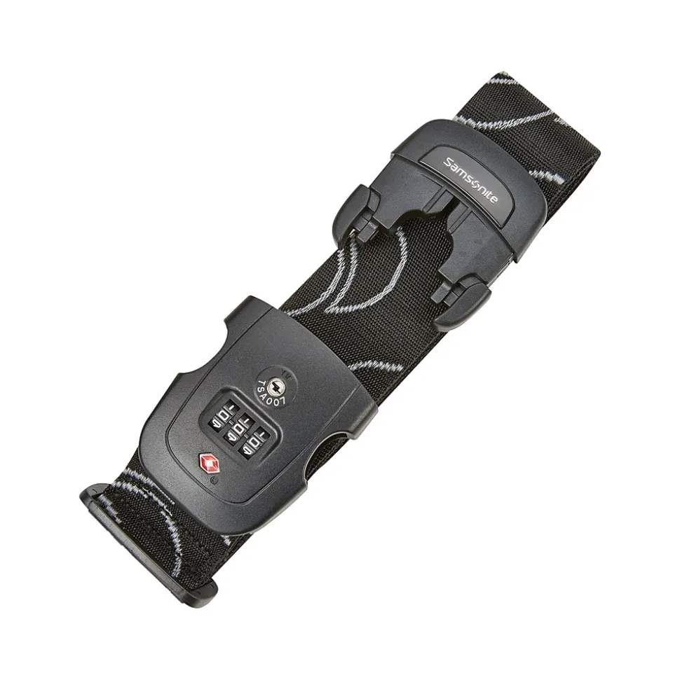 This Samsonite fully adjustable luggage strap cinches around your suitcase for extra security. Rugged ABS buckle is built to withstand the rigors of baggage handling. The triple-dial mechanism sets and resets with hundreds of possible combinations for added convenience and protection.