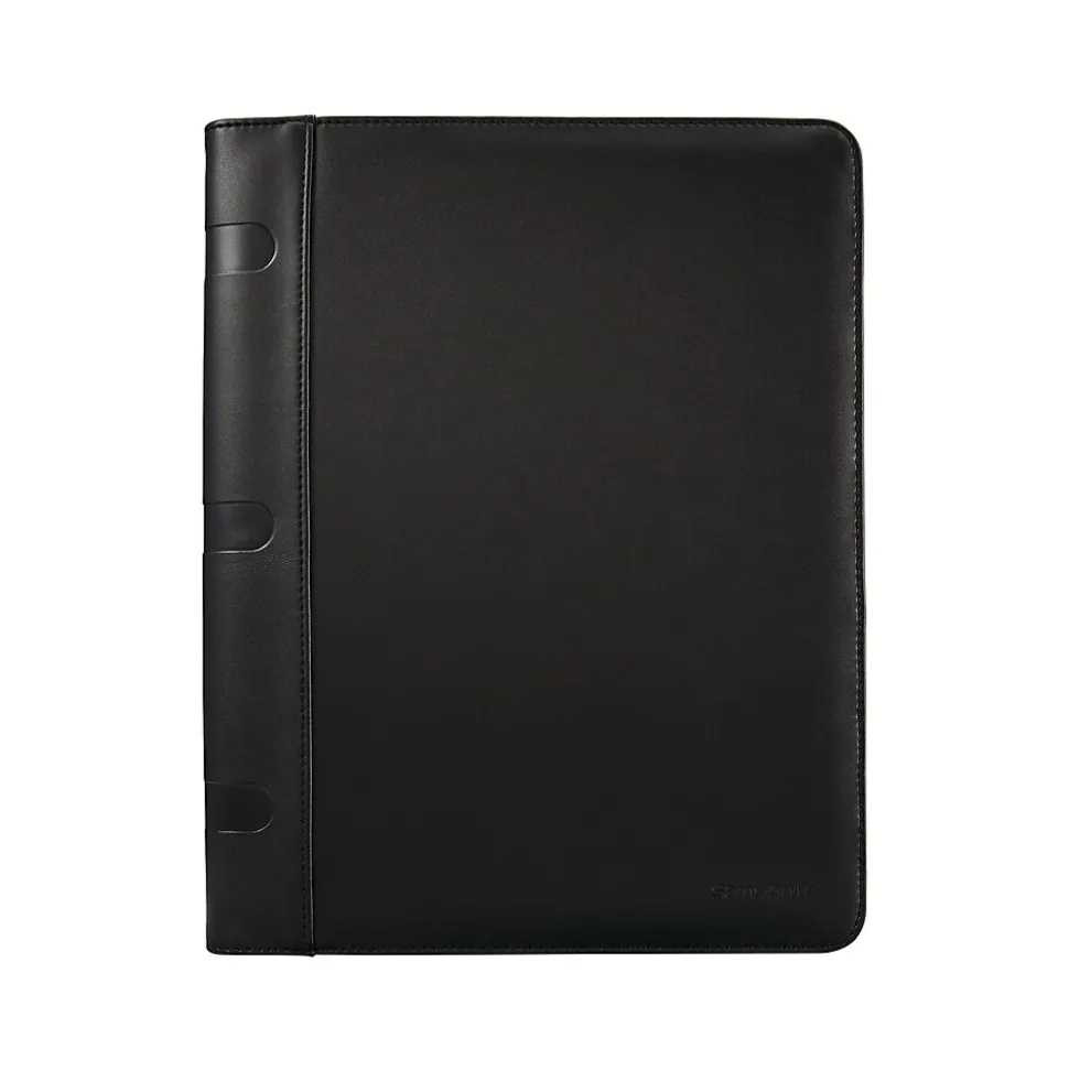 Write down information easily during meetings and classes in this business padfolio. The interior document sleeve offers convenient storage space for loose pages, while the pen loop supplies quick access for simple notetaking. This Samsonite Business padfolio has a cardholder, so you can always keep contact information on hand, and features a high-end leather exterior, providing extra durability and a sophisticated look and feel.
