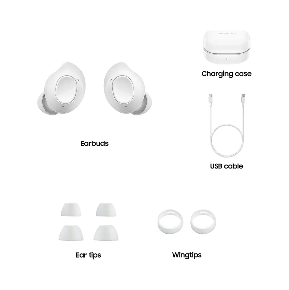 Meet Samsung Galaxy Buds FE, the new audio solution that fits perfectly into your workday. With a newly redesigned wingtip and your favorite Galaxy innovations, you can stay locked into your workflow comfortably with the great sound quality and features you expect from Samsung. Listen in comfort throughout your day with a newly redesigned wingtip that keeps your Buds securely in place. Choose from a variety of wingtip sizes for a personalized fit that feels so natural, you may forget you’re wearing Buds at all. Immerse yourself in a world of sound throughout your day. Galaxy Buds FE features Active Noise Cancellation to help minimize the distracting sounds in your environment, from idle chatter to an airplane flying overhead.