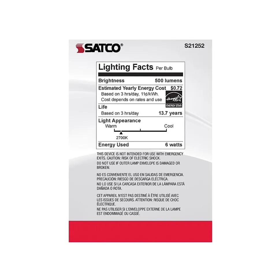 The Satco Lighting 6W LED lamp is traditional yet contemporary with its vintage style and energy-saving LED technology. Elegantly illuminate any room in the house with this dimmable globe-shaped bulb. Sophisticated and modern, this lamp delivers 15000 hours of warm white light.