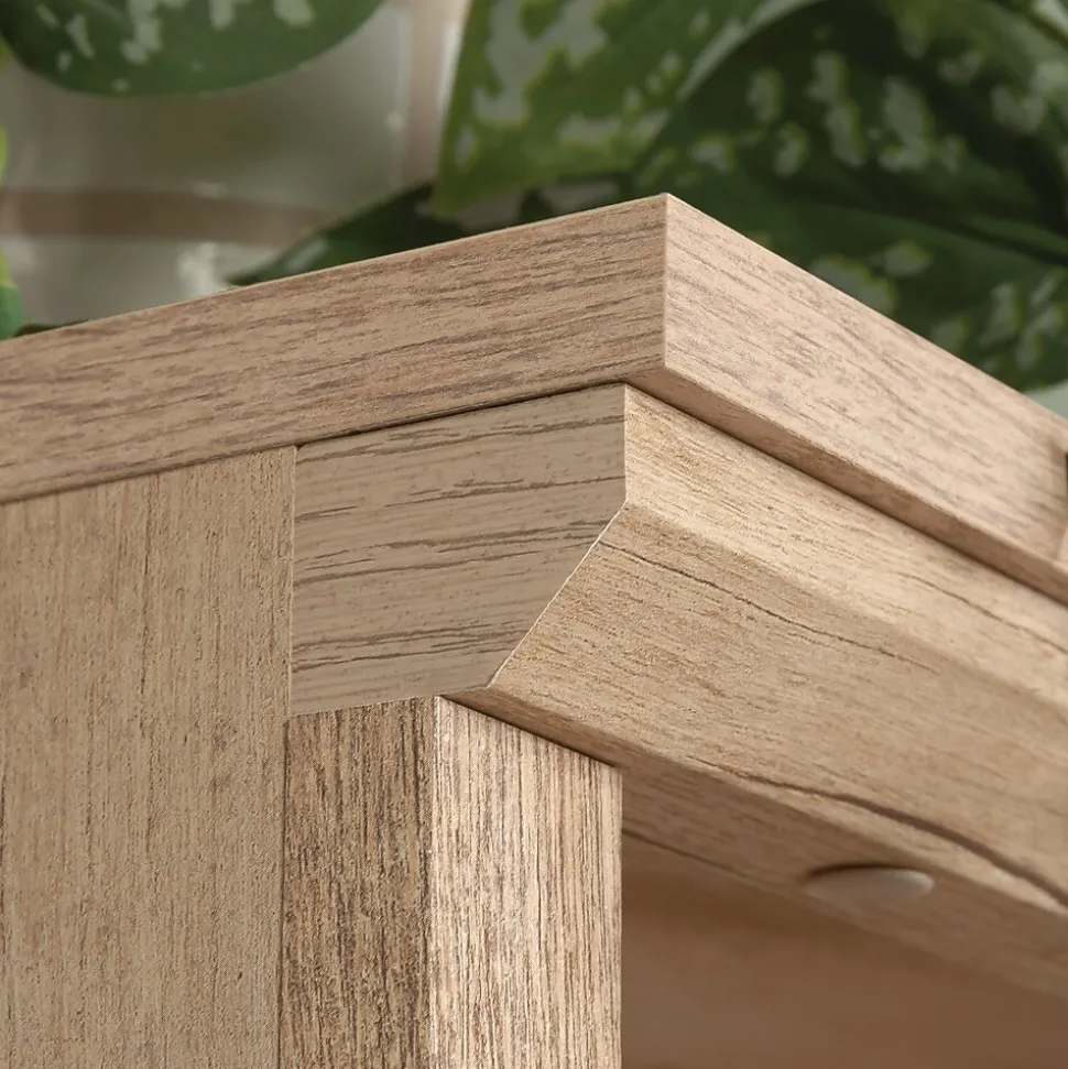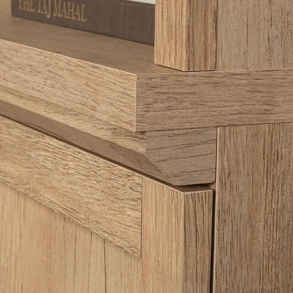 Bring classic beauty and chic cottage style to your home decor with this library bookcase with doors from the Aspen Post collection. The upper portion of this 5-shelf bookcase features two spacious adjustable shelves that are perfect for storing and displaying anything from your collection of novels, storage bins, and children’s books to photos of your family, decorative plants, and collectibles. Behind the double doors of the tall bookshelf is an additional hidden storage area that contains a third adjustable shelf so you can stow away any other seasonal home essentialsthe things that guests will never see. The charming style and convenient functionality make this library bookcase a perfect fit for your living room, office or even in the bedroom. It also features cord access through the enclosed back panel so that all your electrical cords and wires are organized neatly and out of sight. Finished in the light and neutral Prime Oak and accented with black hardware, this quaint farmhouse style bookcase with doors gives your home the bright new look you’ve been waiting for.