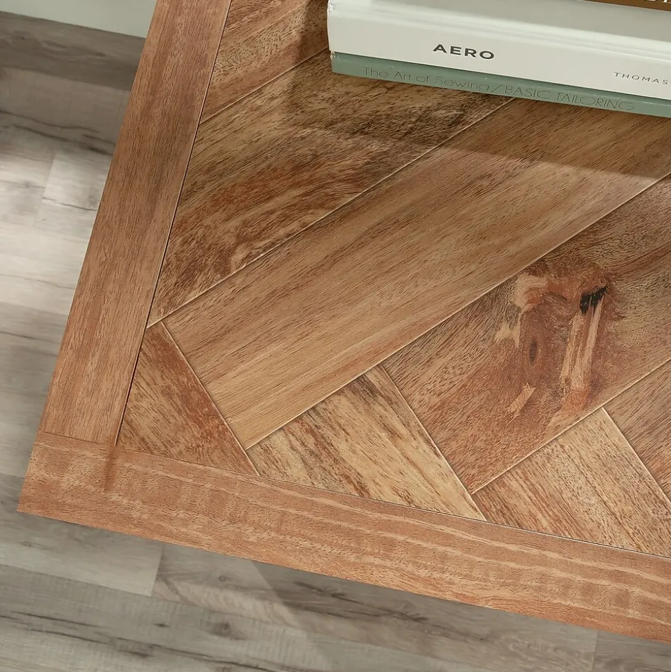 Storage space is a must in any modern home office. Add stylish storage to your workspace with this library base cabinet from the Cannery Bridge collection. Use the top surface of this 2-door base cabinet for a lamp, your binders, a planner, or use it as a space for your printer. A decorative herringbone pattern on the top surface means that you care about function AND style. Behind the double doors of this base storage cabinet is a hidden area with a large adjustable shelf for customizable storage options. You can stash books, papers, and other office essentials in this library storage cabinet all while utilizing as much space as possible. An enclosed back for cord access and management allows for a convenient path for cables and cords, minimizing clutter in your 2-door storage cabinet. This item is finished on all sides for a polished look from every angle. Finished in a stunning Sindoori Mango, this library cabinet will add style and functionality to your office.