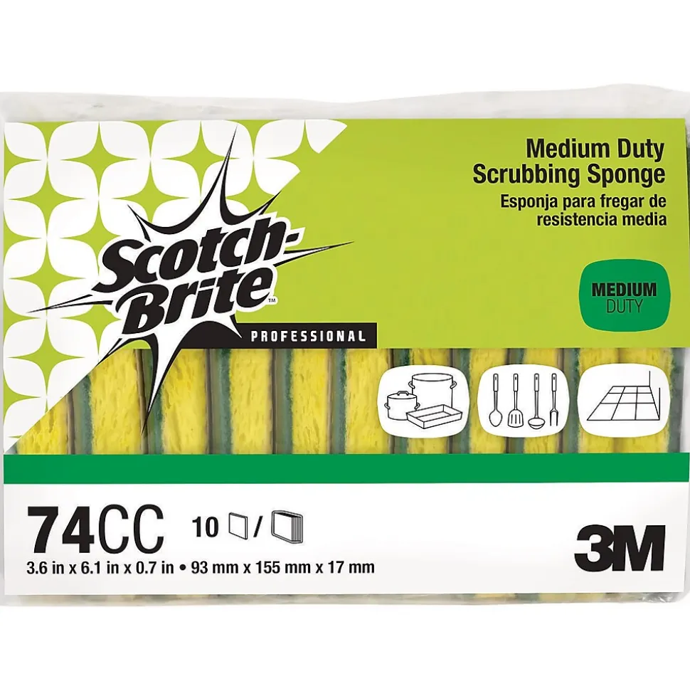 On one side, it’s a No. 96 scouring pad for scrubbing and cleaning. On the other side, the cellulose sponge quickly wipes up spills and messes and can carry cleaning solutions to the work surface.