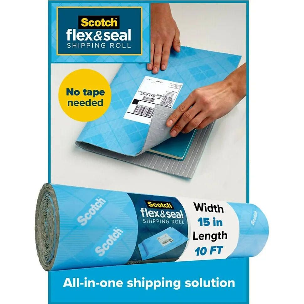 - SECURES YOUR PACKAGES – Scotch™ Flex & Seal Shipping Roll has a unique three-layer construction making it a durable, water-resistant and cushioned packaging solution. It sticks securely to itself but not your item, just press firmly for a guaranteed seal* – no tape needed!