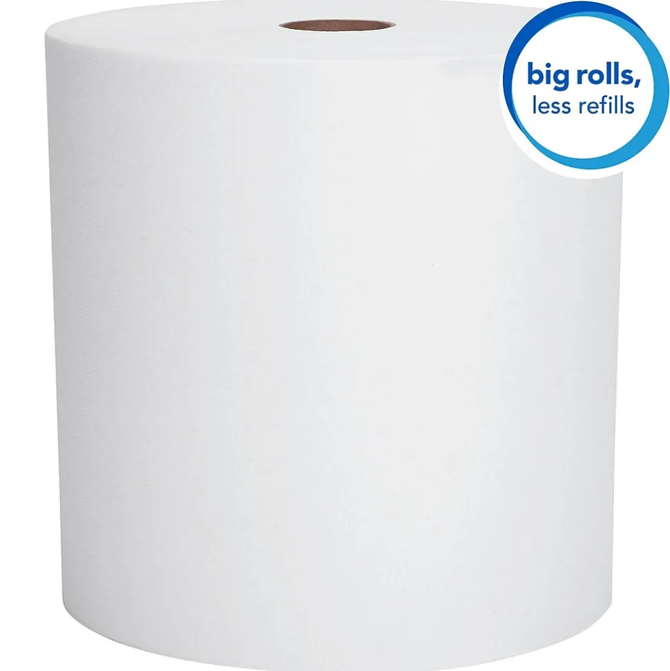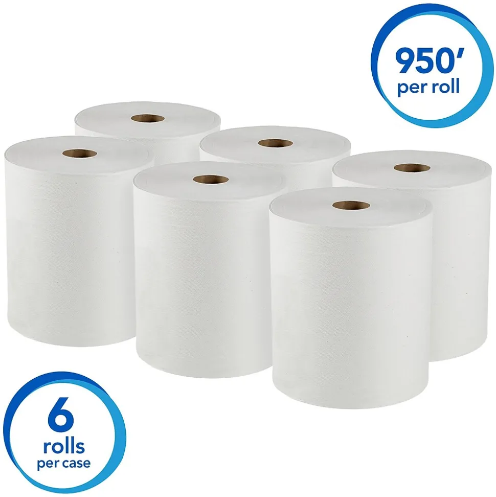 Scott Essential provides reliable balance of efficiency, performance and value. Reduce maintenance time, run-outs and complaints with Scott Essential Hard Roll Paper Towels. The roll has a core size of 1.75″ and is compatible with a variety of Kimberly-Clark Professional dispensers. Plus, measuring 8 inches wide x 950 feet long, the big rolls are designed to last, even in your busy restroom or break room. These absorbent recycled paper towels are designed for efficient general-purpose cleaning and drying, so your employees and guests may use less, saving you money.