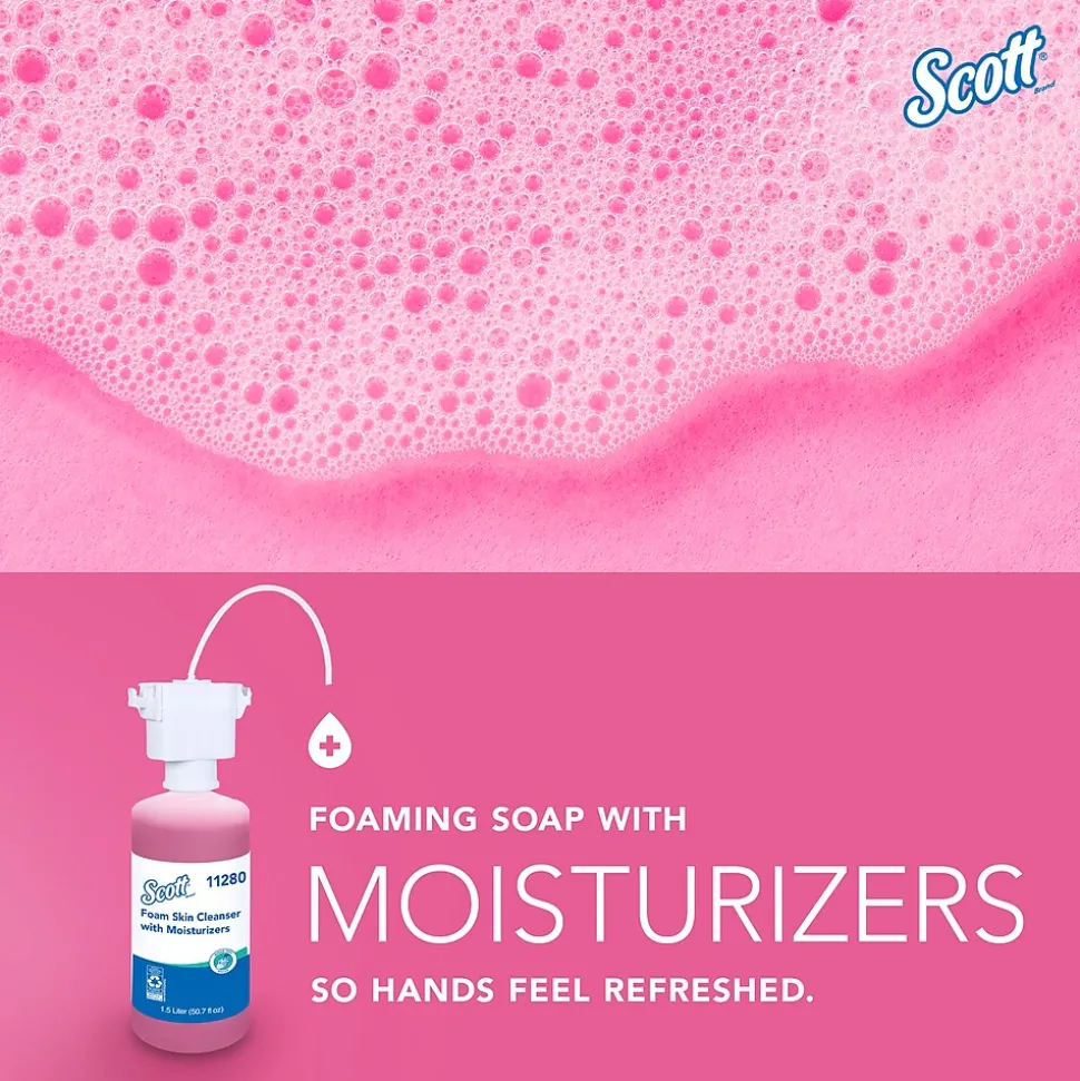 Scott® is one of the world’s most recognized restroom brands with over 150 years of experience keeping your staff and guests healthy. Show you care by providing Scott® Foam Hand Soap with Moisturizers, a preferred soap dispenser refill that helps to stop the spread of germs and offers a superior hand hygiene experience. This pink Scott® brand foaming hand soap features a subtle floral scent and is enhanced with soothing moisturizers to leave hands feeling refreshed. Because the coordinating dispenser is high-capacity, Scott® hand soap refills are a popular choice for use in washrooms in offices and stores, as well as hotels, schools, and more. When you’re charged with maintaining restrooms in busy environments, Scott® soap dispenser refills maximize your productivity, while ensuring staff and guests at your facility stay clean and healthy.