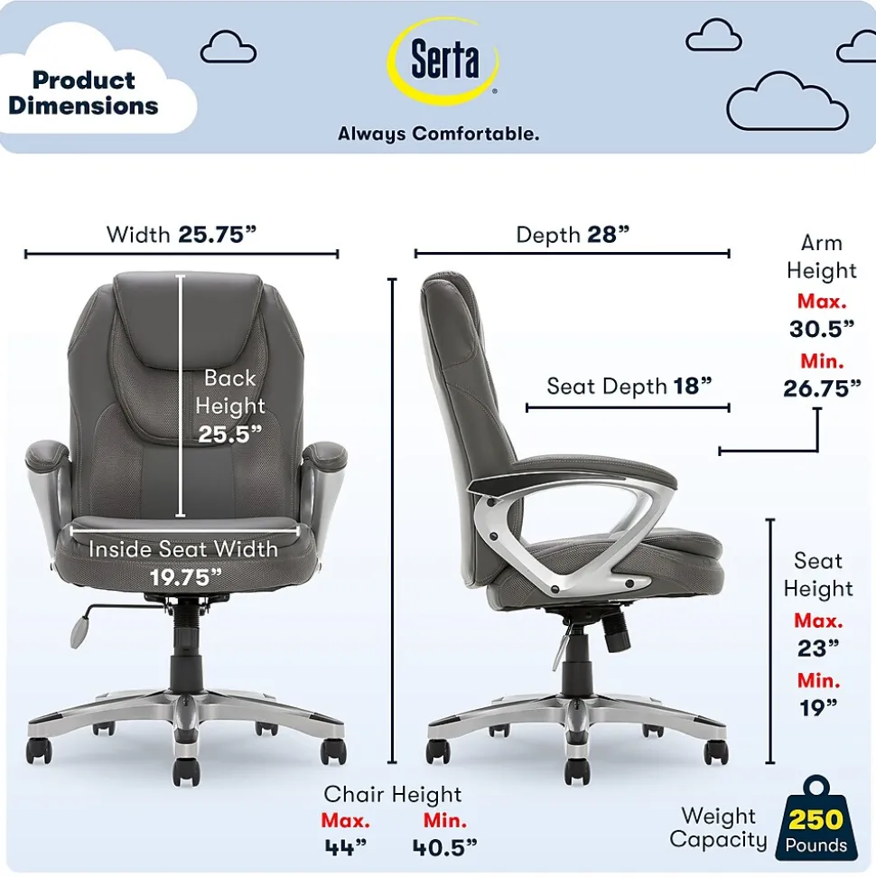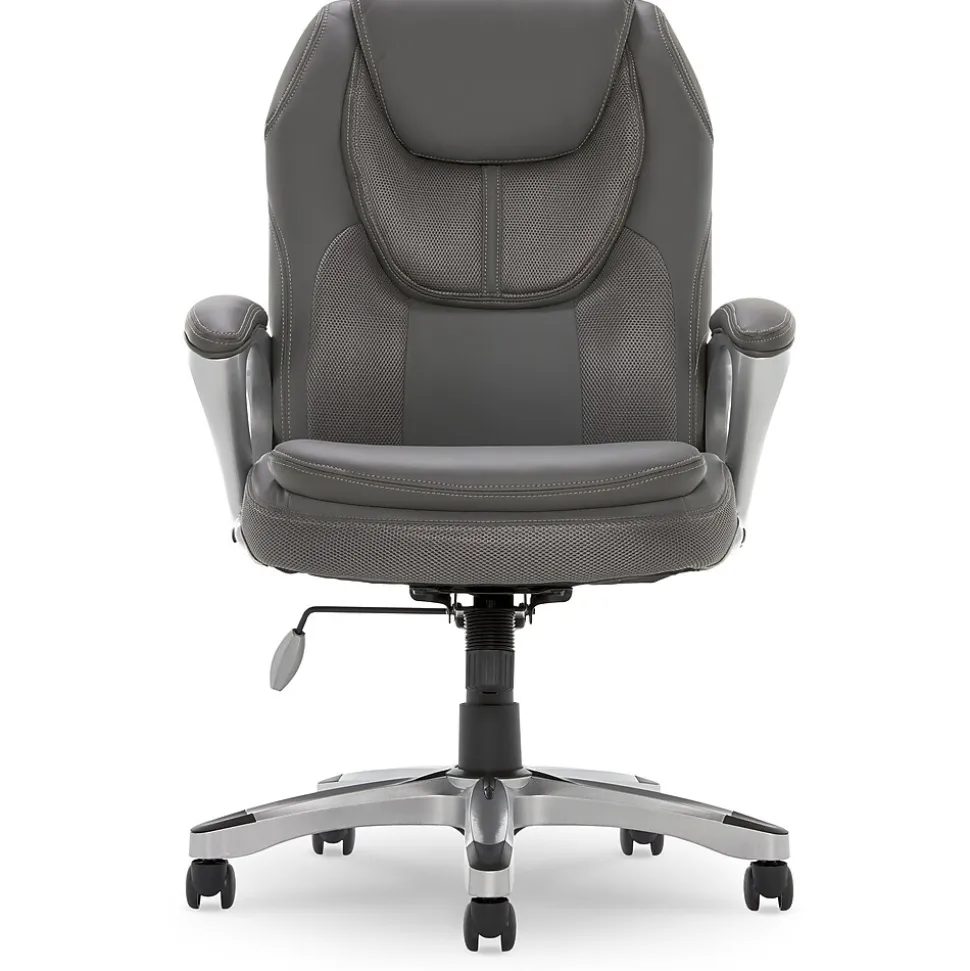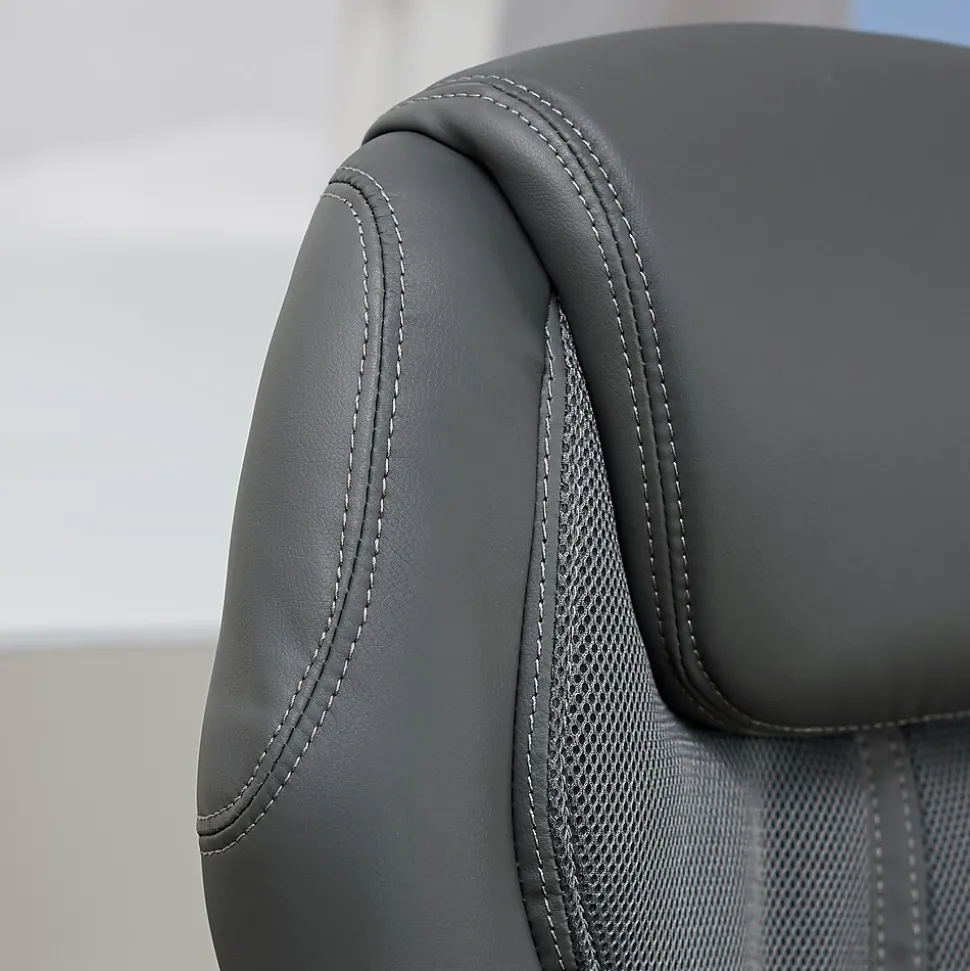 The Serta Works executive chair can do laps around any ordinary office chair. Made with gamers and programmers in mind, this feature-rich chair can help improve your posture. The ergonomic seat and lumbar are contoured to provide customized support and reduce stress in back, neck, and shoulders. The pneumatic seat height adjuster works with a simple weight shift, making it easy to find the right fit for you. And with its sleek race car inspired design, you’ll feel like you’re sliding into the driver’s seat of a high-performance race car. Made with faux leather upholstery and breathable mesh accents, this chair will keep you cool, so you can warm up for your next presentation or round of Gran Turismo.