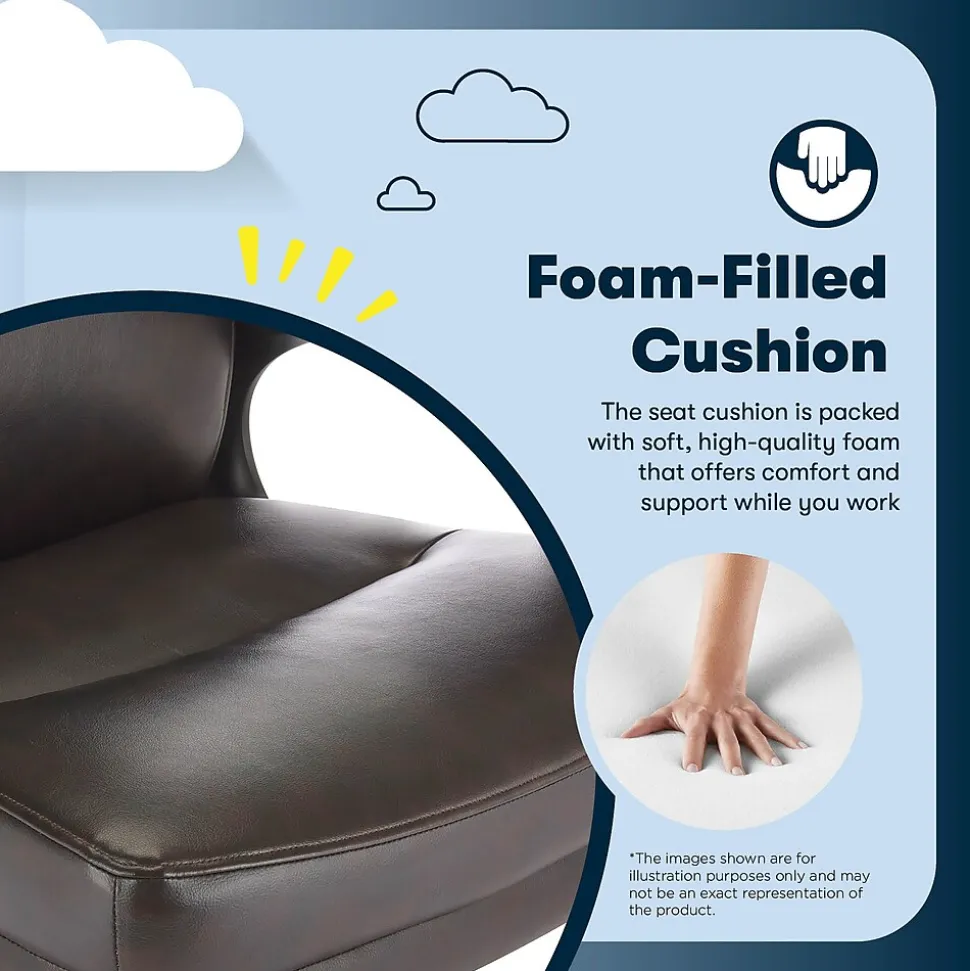 The better you sit, the better you’ll feel. Whether for work, play, or any other activity that has you sitting in our chairs, we believe comfort is everything. We know it’s a big responsibility and take it seriously, just as we do with our mattresses. With over 15 years of making chairs and innovating with designs, materials, and technology, Serta knows what it takes to give you a comfortable sit. The Serta Comfort series of office chairs offers a luxuriously cushioned seat, backrest, and armrests filled with thick, non-recycled Serta foam and upholstered in a soft breathable bonded leather to keep you cool and comfortable during extended use. This chair seamlessly blends its comfort with a sleek design accented by a single channel tuft. Choose from Black, Brown, Gray, or Cognac to find the perfect match for your workspace. This executive model is a mid-back design. Mid-back chairs can be beneficial for those who tend to slouch in high-back chairs, as the lower lumbar support encourages active sitting and prioritize core engagement. It will also enable you to shift positions and stretch more easily throughout the day, helping to prevent muscle fatigue and discomfort that can lead to poor posture. The 360° swivel metal base on double-wheel casters glides smoothly across carpets or rugs, and can handle up to 275 lbs. Finding your ideal seated position is easy with the one-touch side lever for convenient height adjustment to match your work style and desk set-up. Designed for comfort, but delivering stylish ergonomics, the Serta Comfort Executive Mid-Back Chair is your workday partner for crushing emails, pumping out a project or slaying your study time.