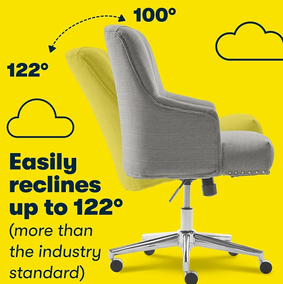 Add a touch of modern elegance to your space with a design that is equally functional and stylish. This expertly-wrapped, neutral design is height-adjustable to tailor your professional space. The chrome-finished, stainless-steel stand offers you 360-degree swivel and casters for easy mobility. The memory foam seat and arms with pocket coils feature renowned Serta comfort, perfect for home or office use.